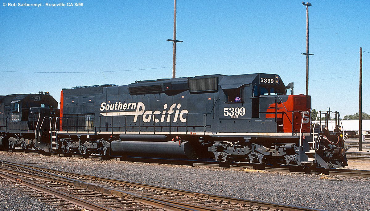 She was painted into SP grey and red with SP Speed Lettering after the SP/D&RGW merger and had her nose-mounted gyralight removed.