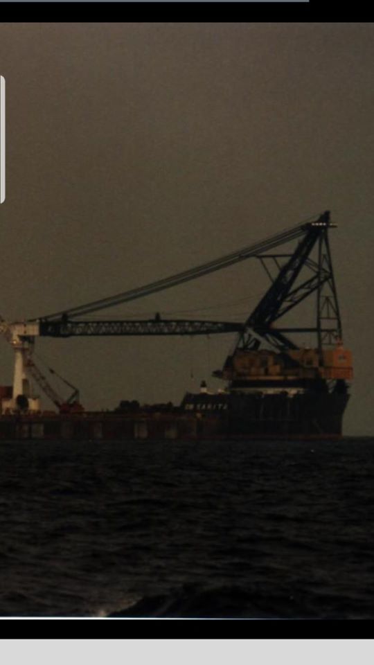 The Sarita was a barge that I never got to work. She was never actually a J. Ray McDermott barge, but she had been owned by Brown & Root and later Offshore Pipelines, Inc, or OPI, which McDermott bought during my time there. She was an interesting barge in several ways. The most obvious of which is that her crane was mounted on her bow. She was self-powered, but not DP equipped. She featured a good sized crane for her day, similar in capacity to contemporary barges that I did work such as the JRM DB22 and B&R/OPI Ocean Builder 1. She featured around a 1600 ton revolving crane. She worked for a time in Alaska where I hear she suffered a boom failure, possibly attributed to structural failure due to the cold. She ended up being sold to a succession of operators and was renamed several times as follows: Sarita, BAR 437, OHI 5000, Grande Trade and Wealthy Globe. She was upgraded at some point with a much larger 5000 ton crane which appeared way out of proportion on her hull. Very shortly after her upgrading, possibly even prior to her first job, she was pushed onto the rocks during severe weather while tied up in port causing significant hull damage from which she was never to recover. If you worked on her, have additional information or photos, I would be glad to hear from you.
