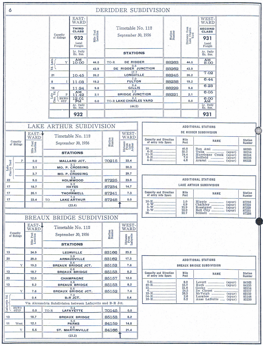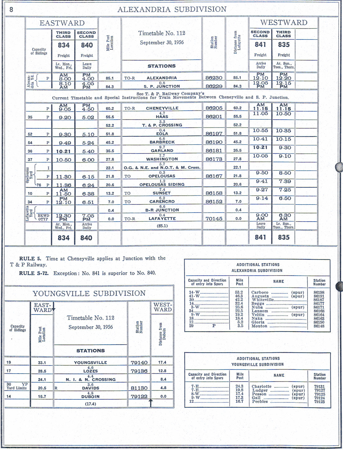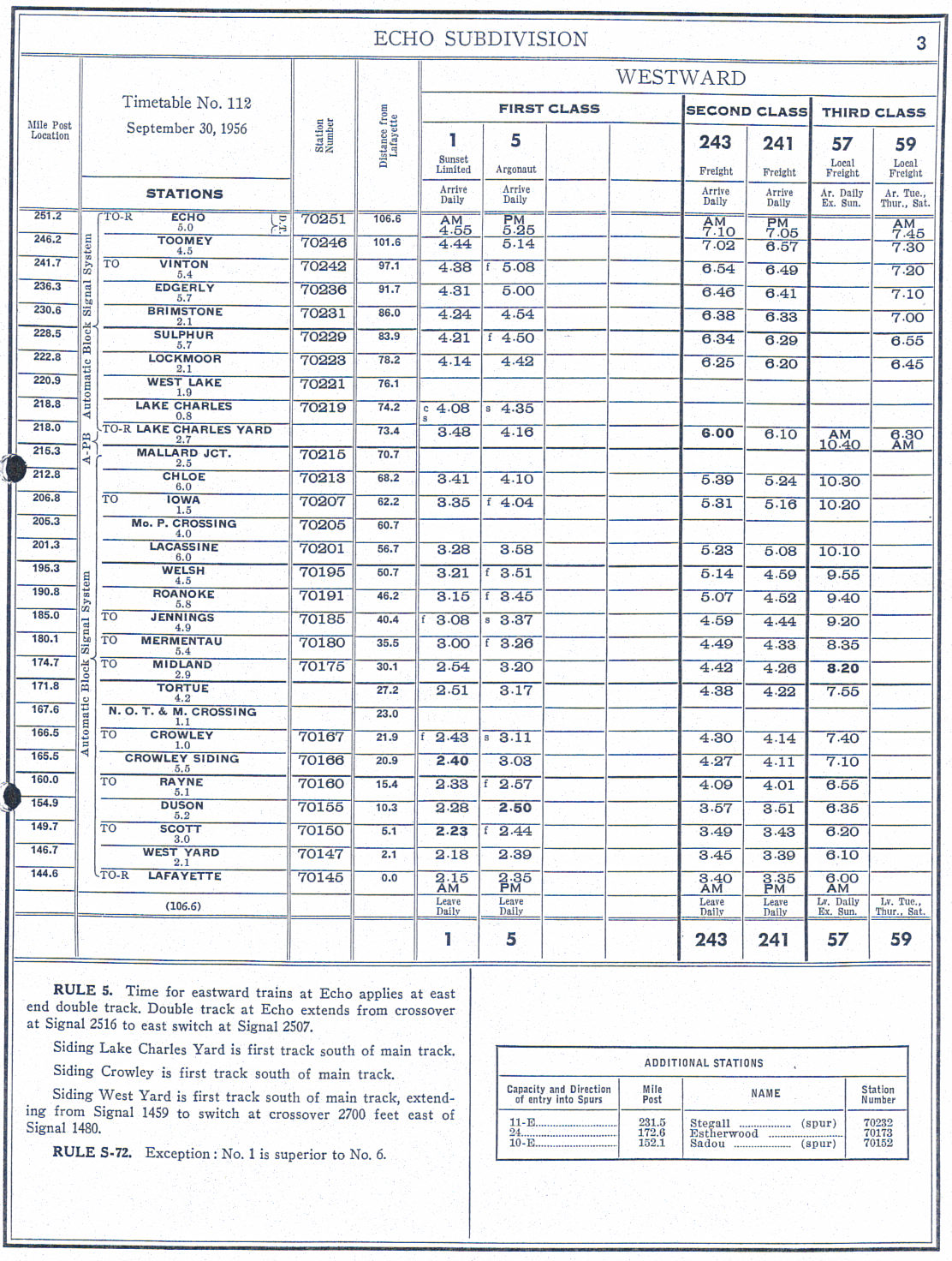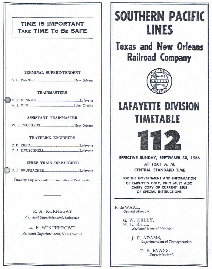 SP Lafayette Division employee timetable #112 effective 9/30/1956.