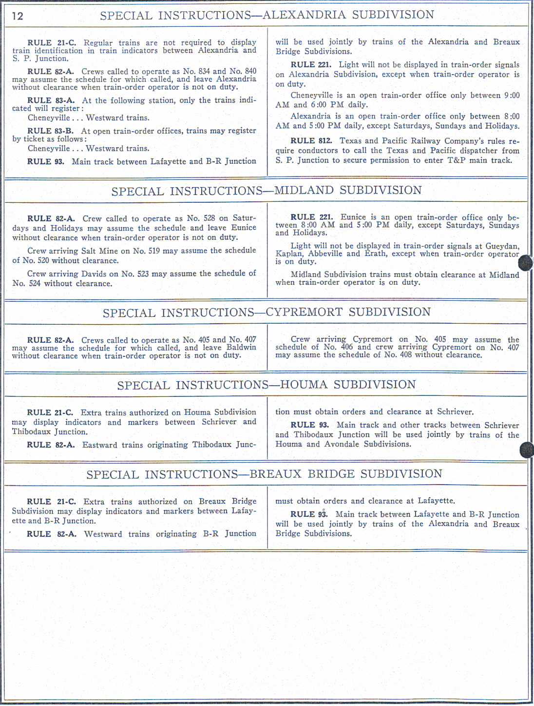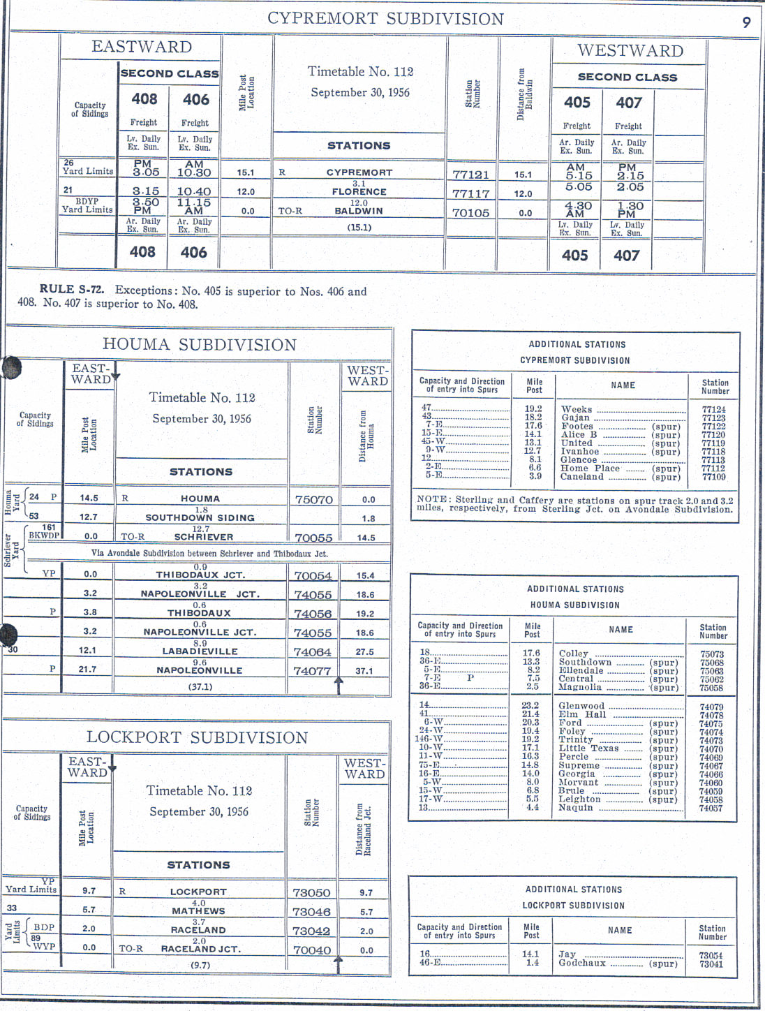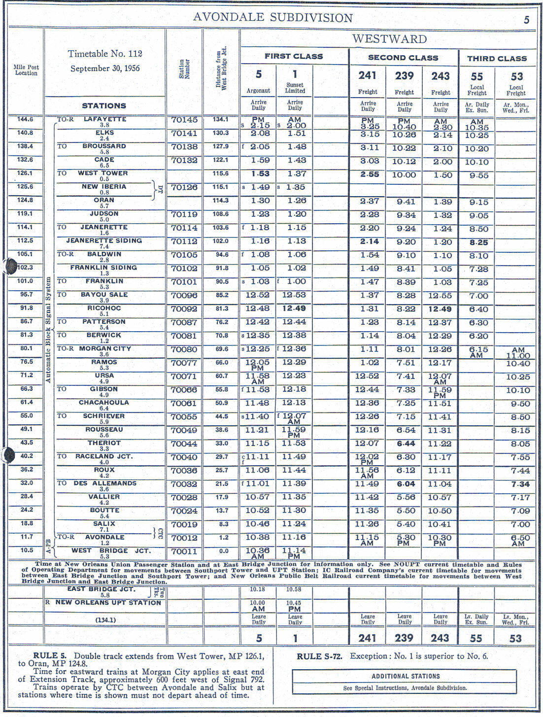 SP Lafayette Division employee timetable #112 effective 9/30/1956.