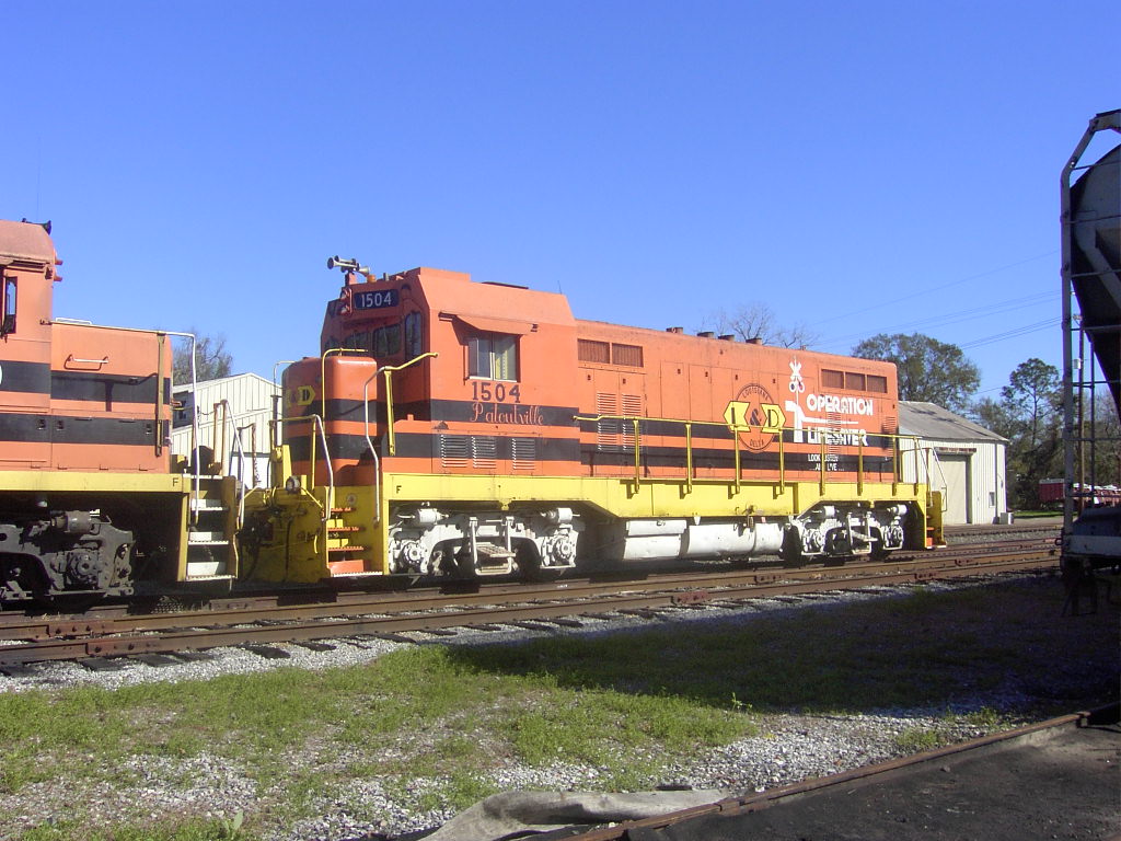 Louisiana & Delta locomotive 1504 is a former ATSF CF7, originally built as ATSF F7A 206C in Jul 1949. It was rebuilt by Santa Fe to as CF7 2489 in Dec 1974. It was subsequently sold to xxxx. It came to L&D in 19xx and was assigned number LDRR 1504. It wore the name "Patoutville."