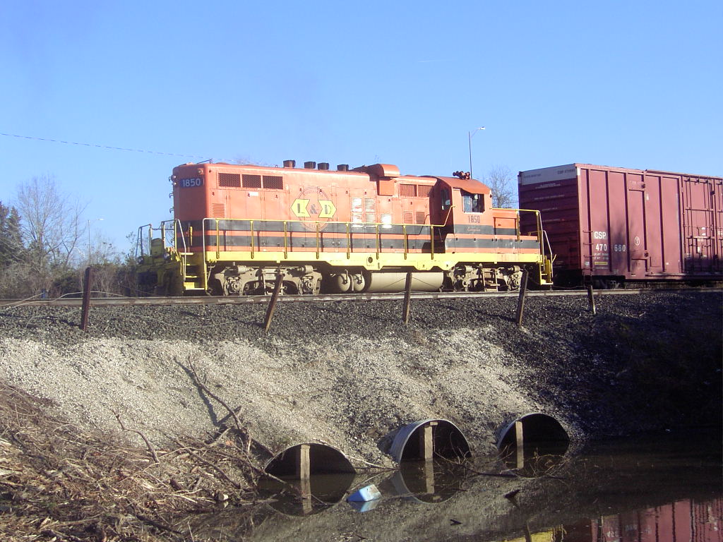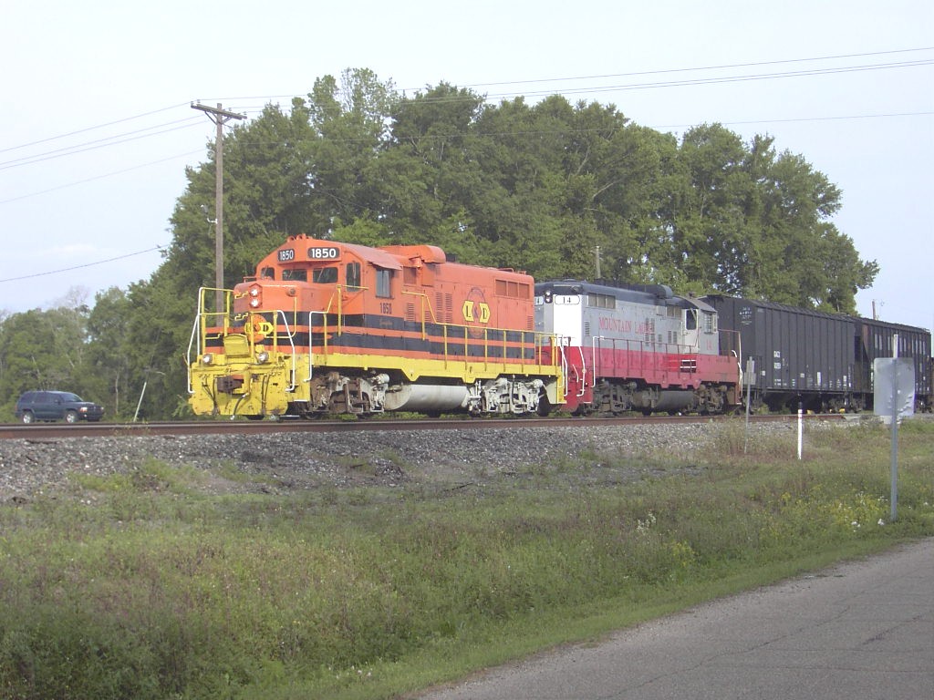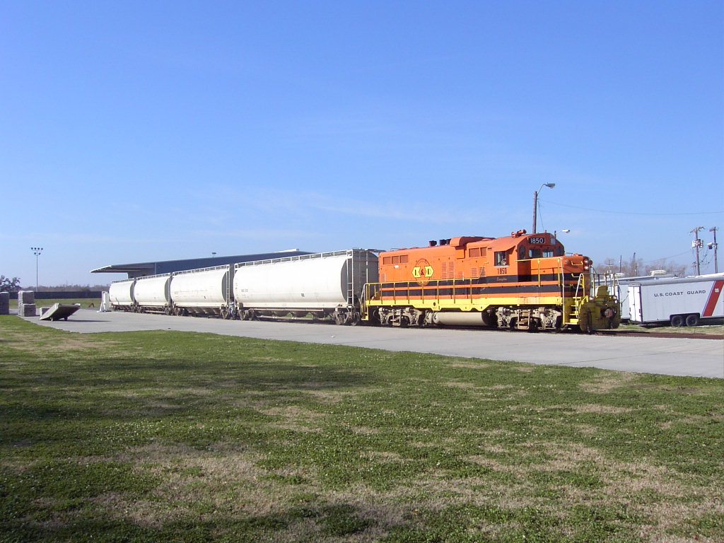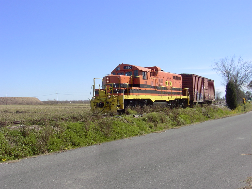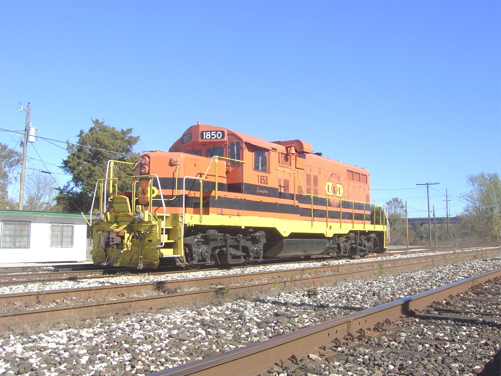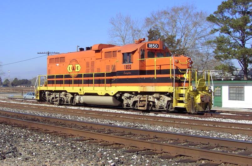 Louisiana & Delta locomotive 1850 is a chop-nosed GP10, originally built as GP9 IC 9135 in Jan 1956 with frame number 5409-18. It was rebuilt by the ICG at their Paducah, KY shops with a new low nose as ICG 8110 in Dec 1974. It was sold to Mountain Laurel Railroad as their MNL 12 in Feb 1992. It came to L&D in Jan 1997 and was assigned number LDRR 1850. It ran for a short time with no changes and was the first of the ML units repainted into L&D's corporate colors as LDRR 1850. At one time, it carried the name "Evangeline" on her cab, but this was removed ca. 2006.