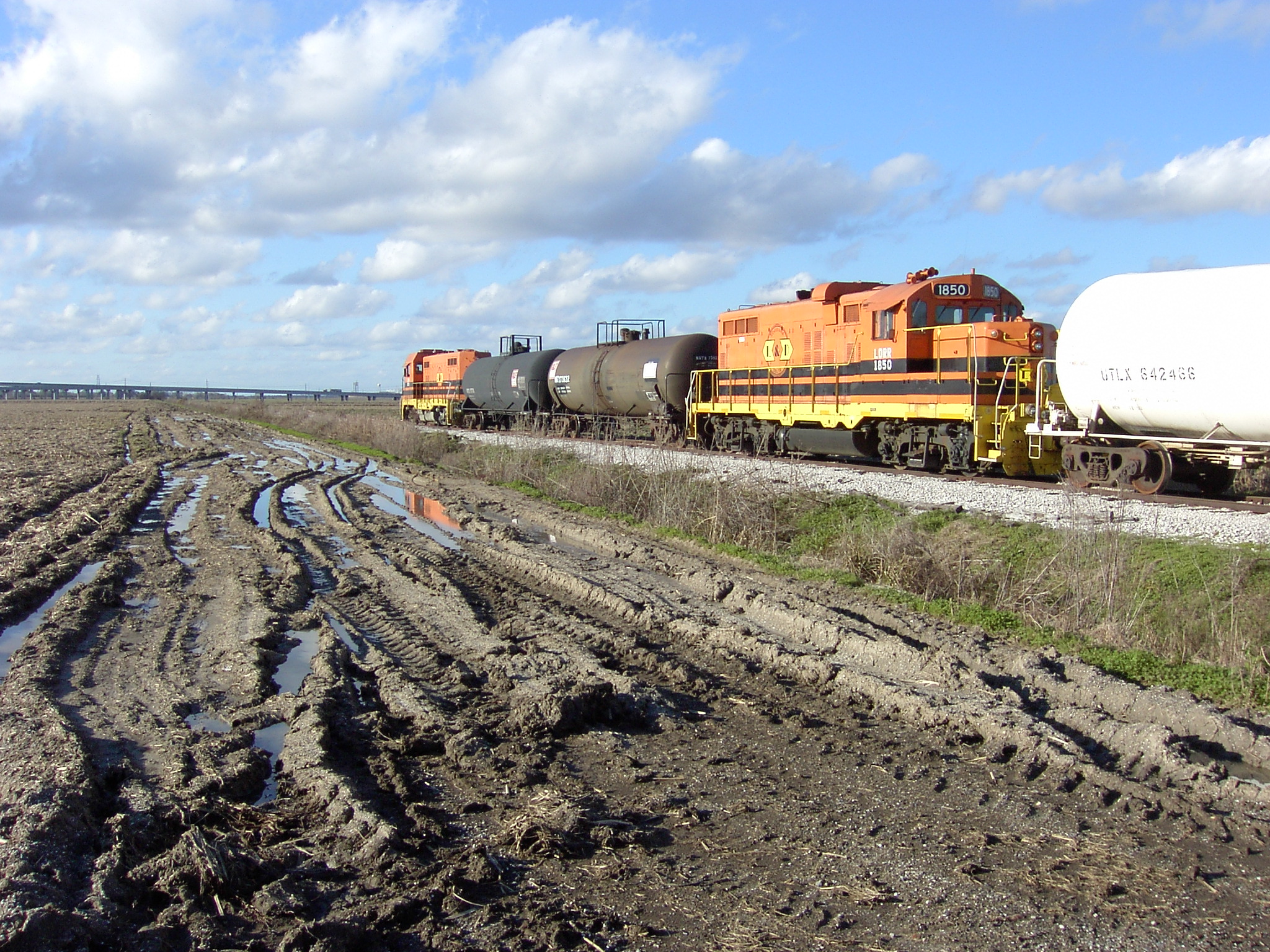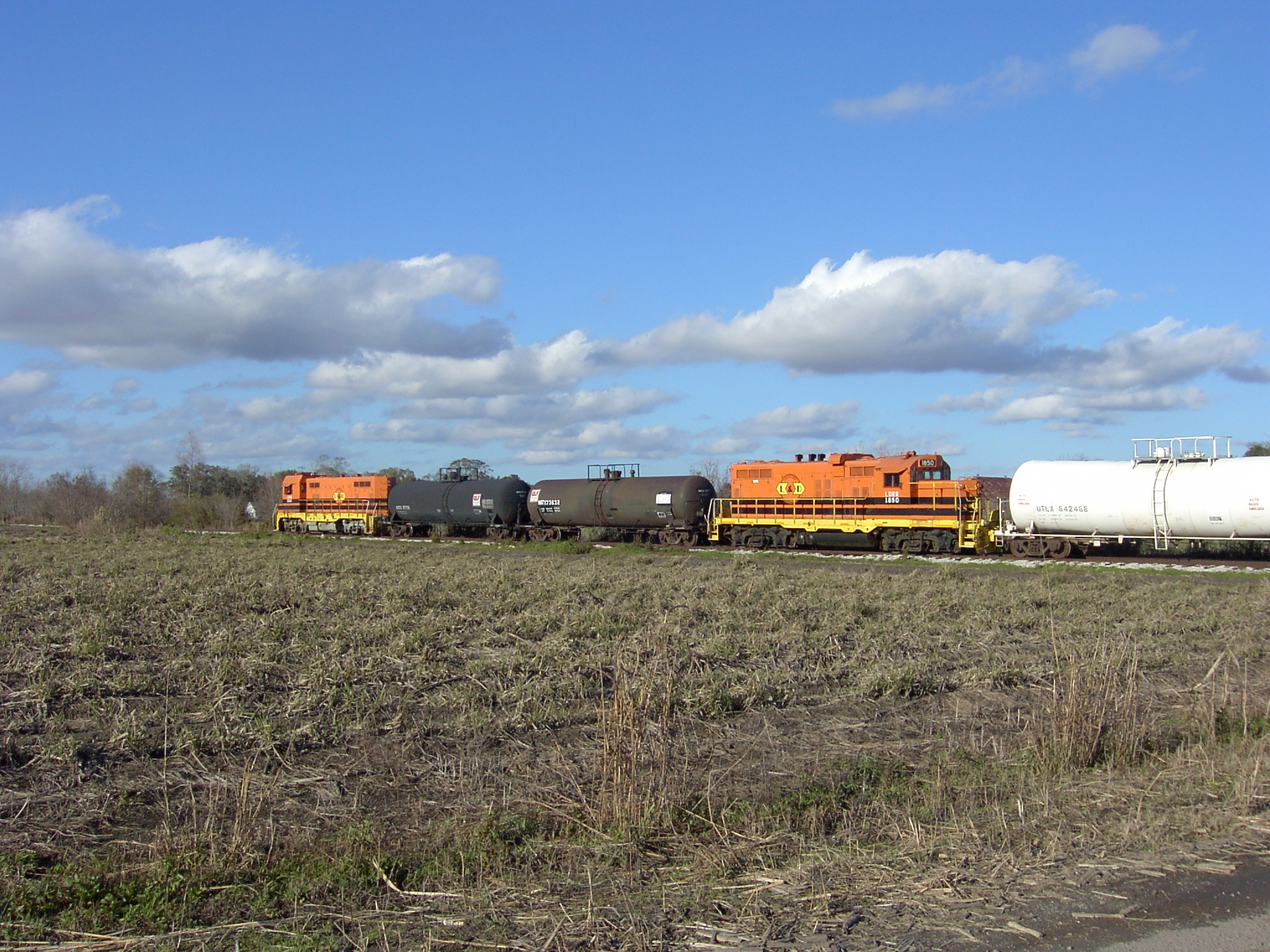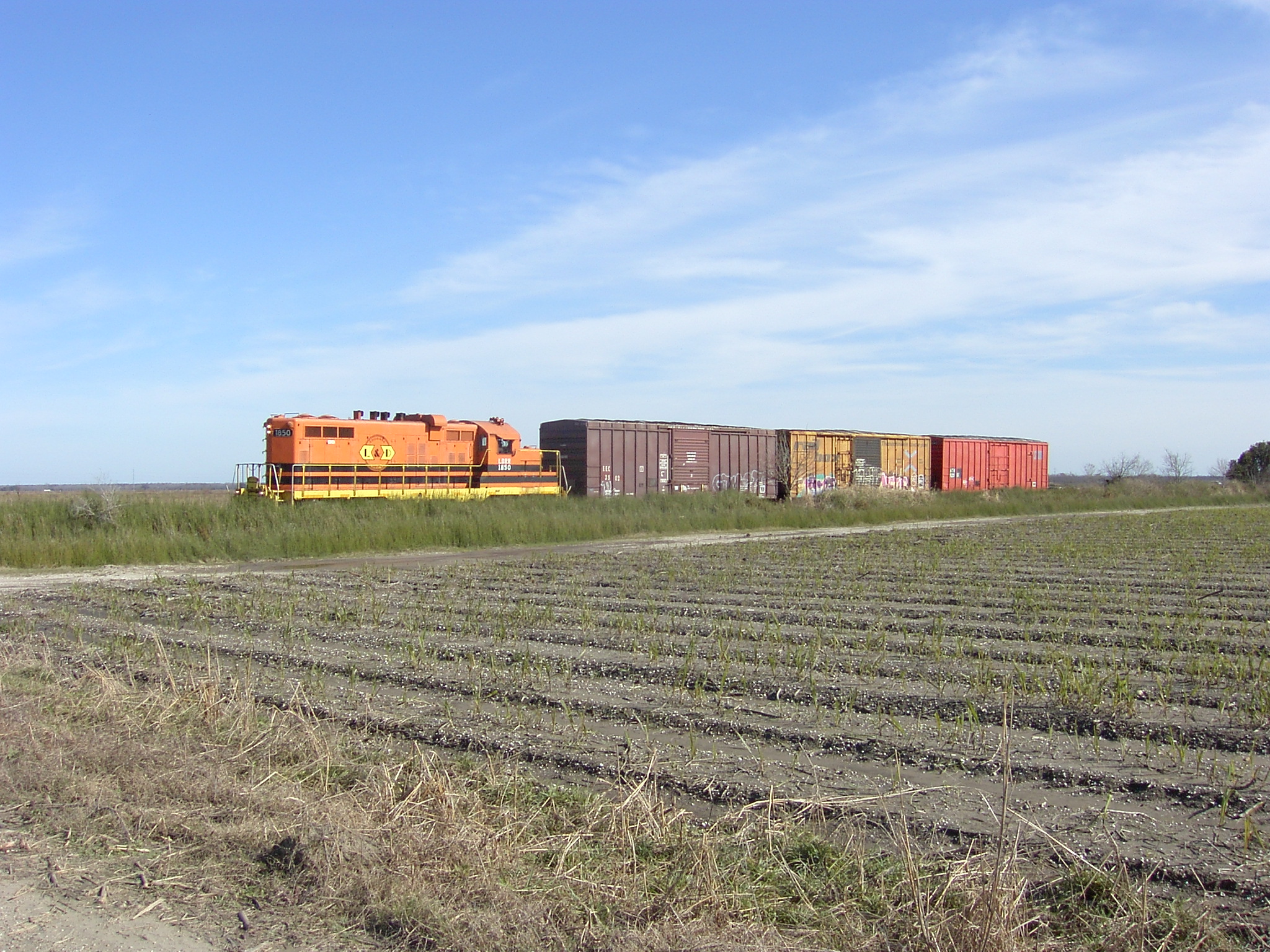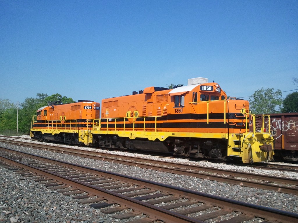 Louisiana & Delta locomotive 1850 is a chop-nosed GP10, originally built as GP9 IC 9135 in Jan 1956 with frame number 5409-18. It was rebuilt by the ICG at their Paducah, KY shops with a new low nose as ICG 8110 in Dec 1974. It was sold to Mountain Laurel Railroad as their MNL 12 in Feb 1992. It came to L&D in Jan 1997 and was assigned number LDRR 1850. It ran for a short time with no changes and was the first of the ML units repainted into L&D's corporate colors as LDRR 1850. At one time, it carried the name "Evangeline" on her cab, but this was removed ca. 2006.