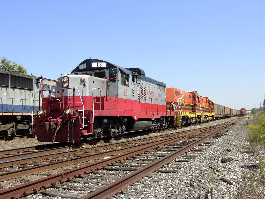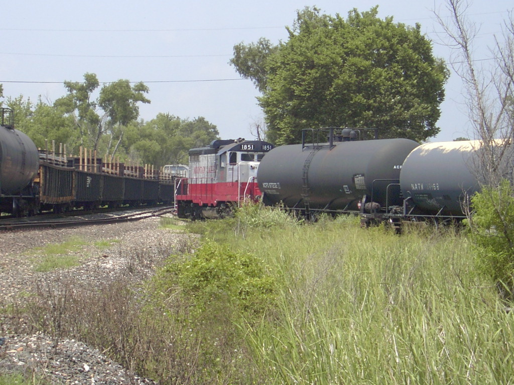 Louisiana & Delta locomotive 1851 is a chop-nosed GP10, originally built as GP9 IC 9061 in Dec 1954 with frame number 5359-14. It was rebuilt by the ICG at their Paducah, KY shops with a new low nose as ICG 8119 in Feb 1975. It was sold to Mountain Laurel Railroad as their MNL 13 in Feb 1992. It came to L&D in Jan 1997 and was assigned number LDRR 1851, however, it was not physically renumbered on the locomotive unit Feb 2006. At this time, the reporting marks LDRR and the new number were applied to the cab, but the Mountain Luarel paint and spelled out name were retained. This unit was sent to G & W shops in Panama City for a rebuild to GP10-1 and renumber to LDRR 1709.