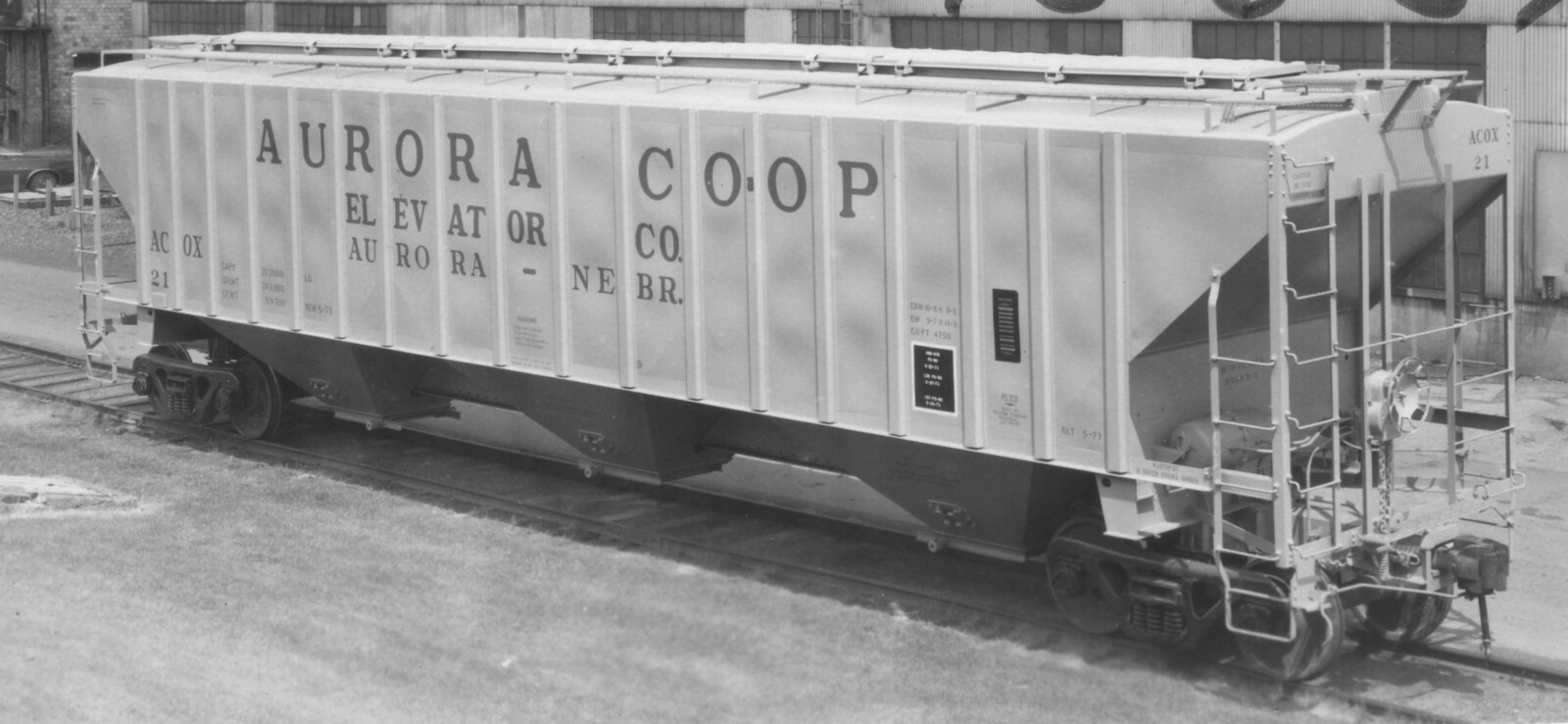 These 3-bay, 100 ton, covered hopper cars were built by PS (Lot 9658B) in 5/1973. They featured 4750 ft3 capacity.