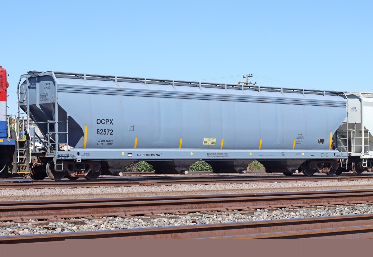 These 4-bay, 95-ton, covered hoppers were built by AC&F in 4-5/1994 as CF5800 Center Flow cars. They featured 5800 ft3 capacity.