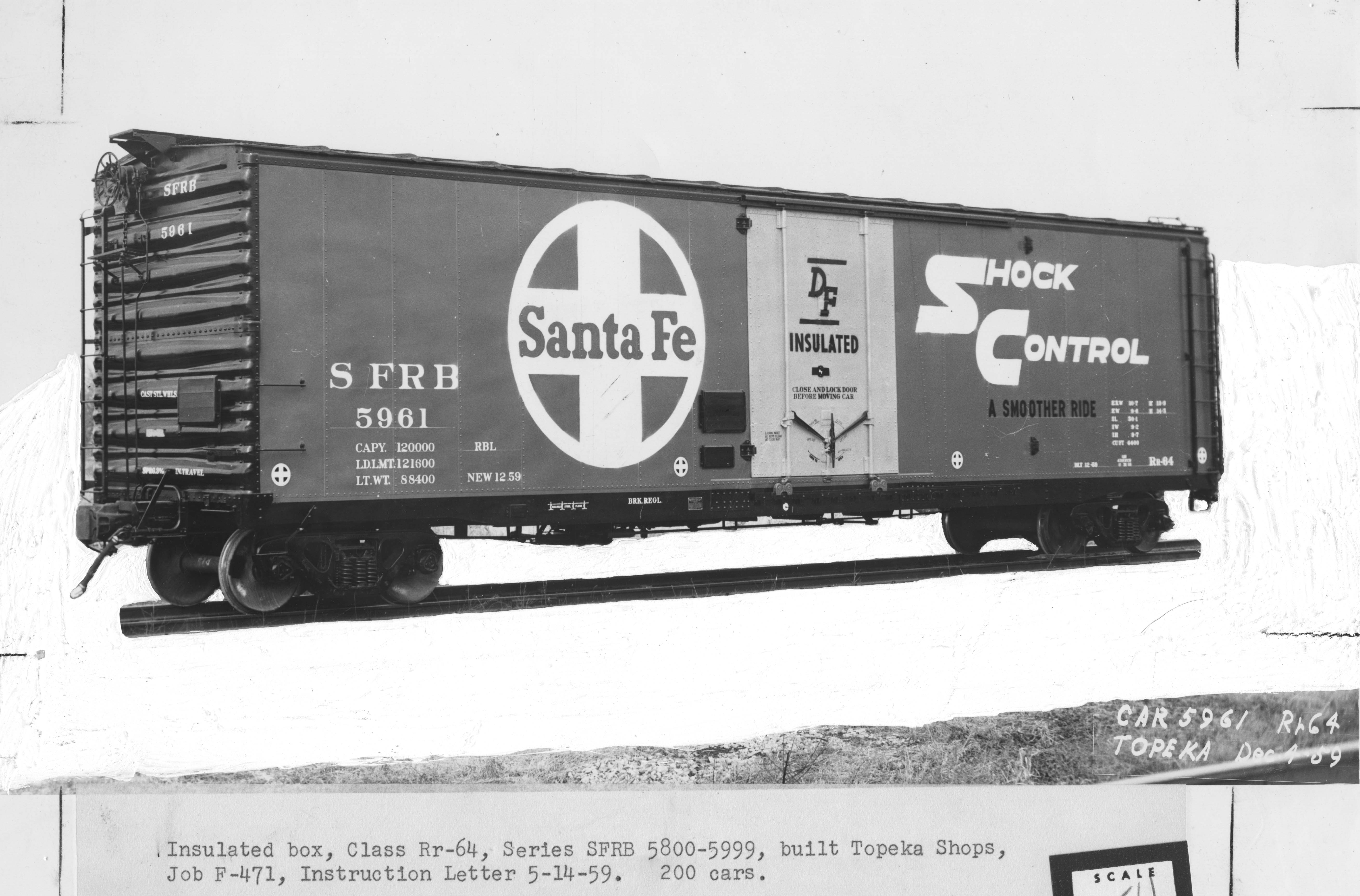 These 60-ton, 50'-1" insulated box cars were built by Santa Fe Topeka Shops (Job F-471) in 12/1959. They featured Shock Control cushioned underframes, DF loaders, 7'-7" plug doors and 4400 ft3 capacity.
