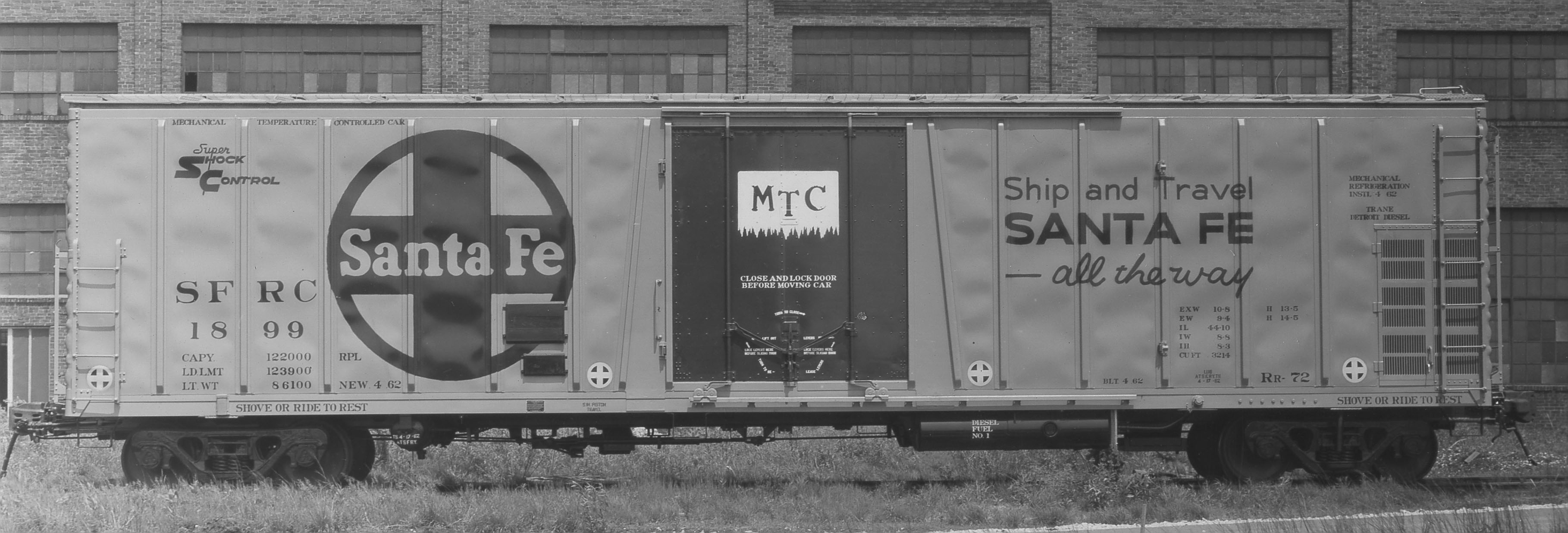 These 60-ton, 44'-10" mechanical refrigerators were built by xxxx in 4/1962. They featured Shock Control cushioned underframes, Trane refrigeration equipment, 8' plug doors and 3214 ft3 capacity.