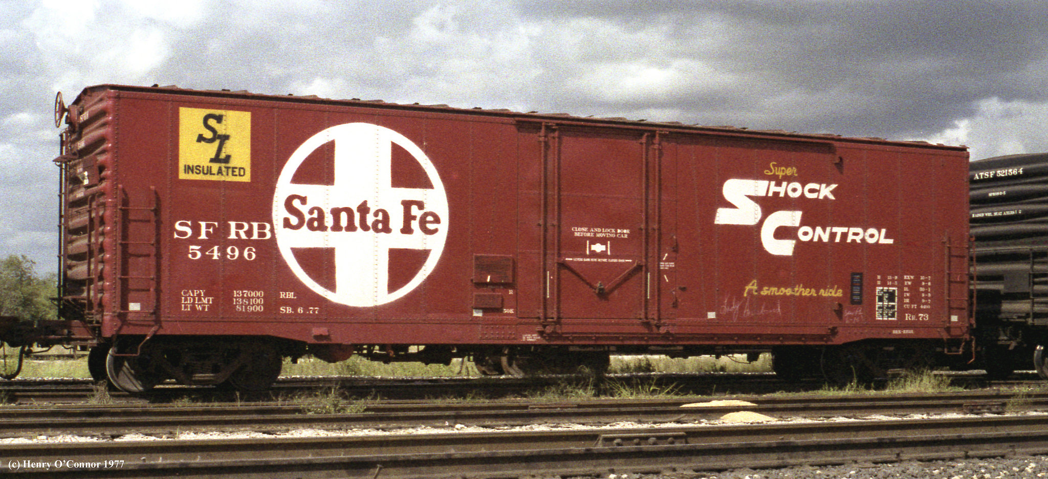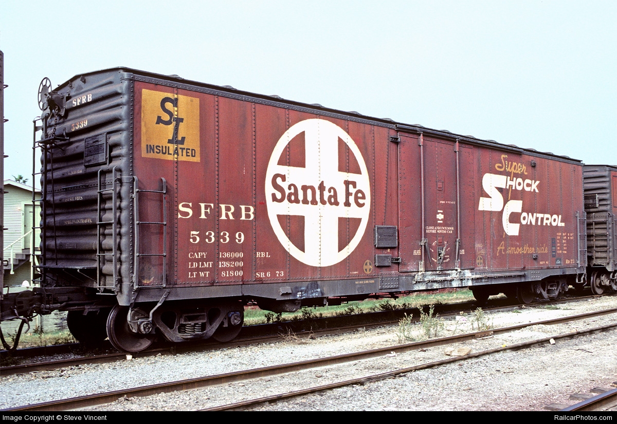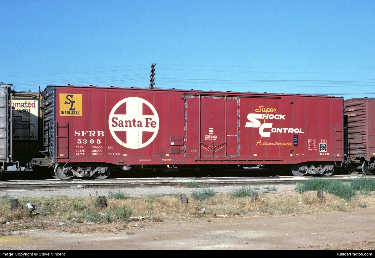 These 70-ton, 50'-1" insulated box cars were built by Santa Fe Topeka Shops in 7/1962. They featured plug doors, Super Shock Control cuhioned underframes and 4490 ft3 capacity.