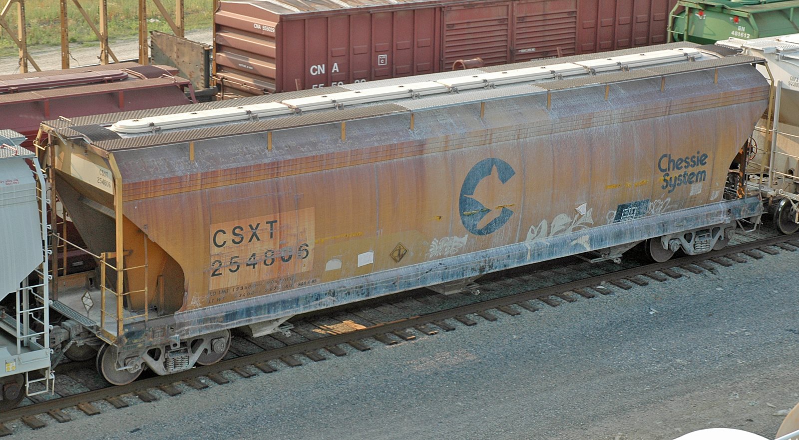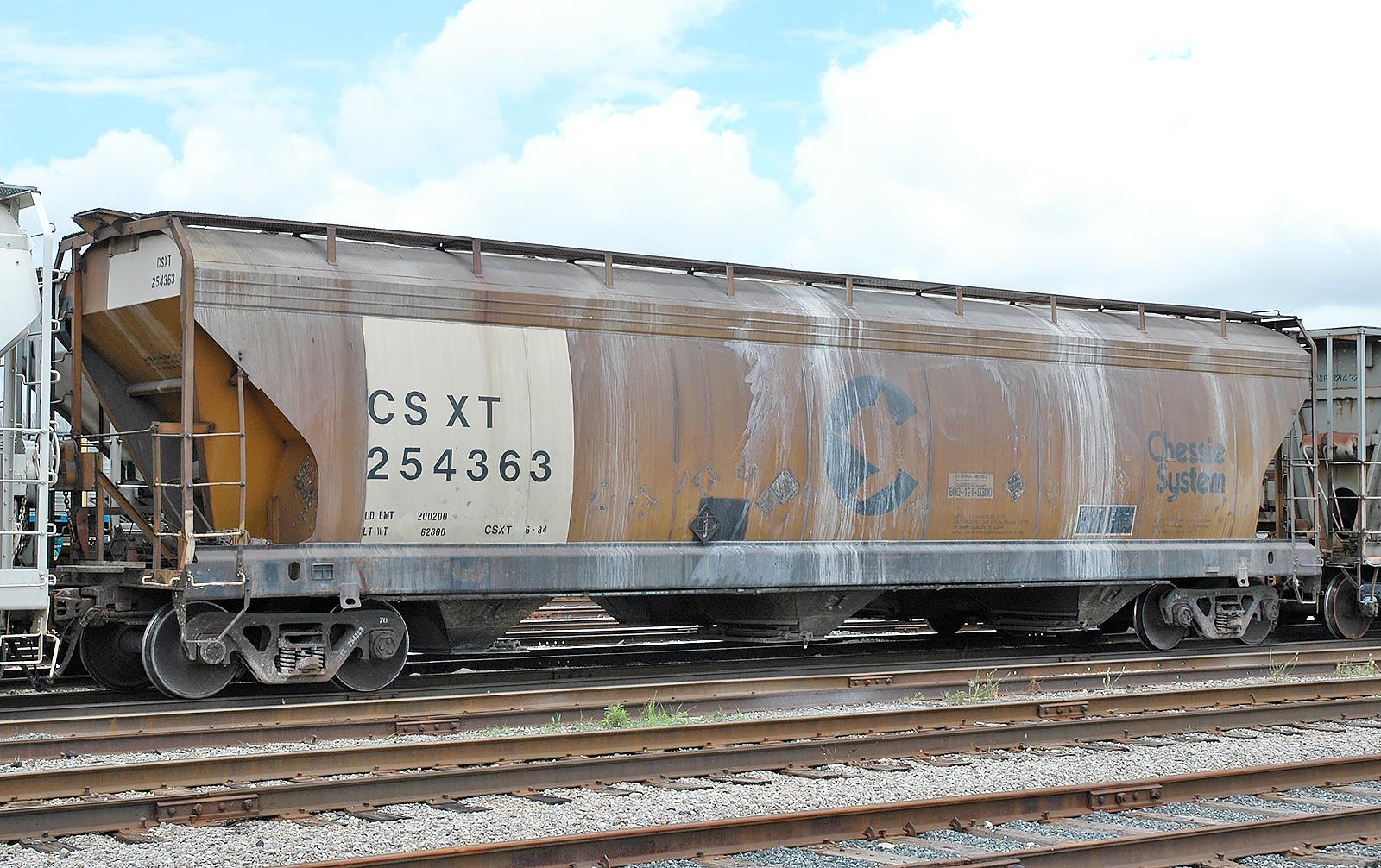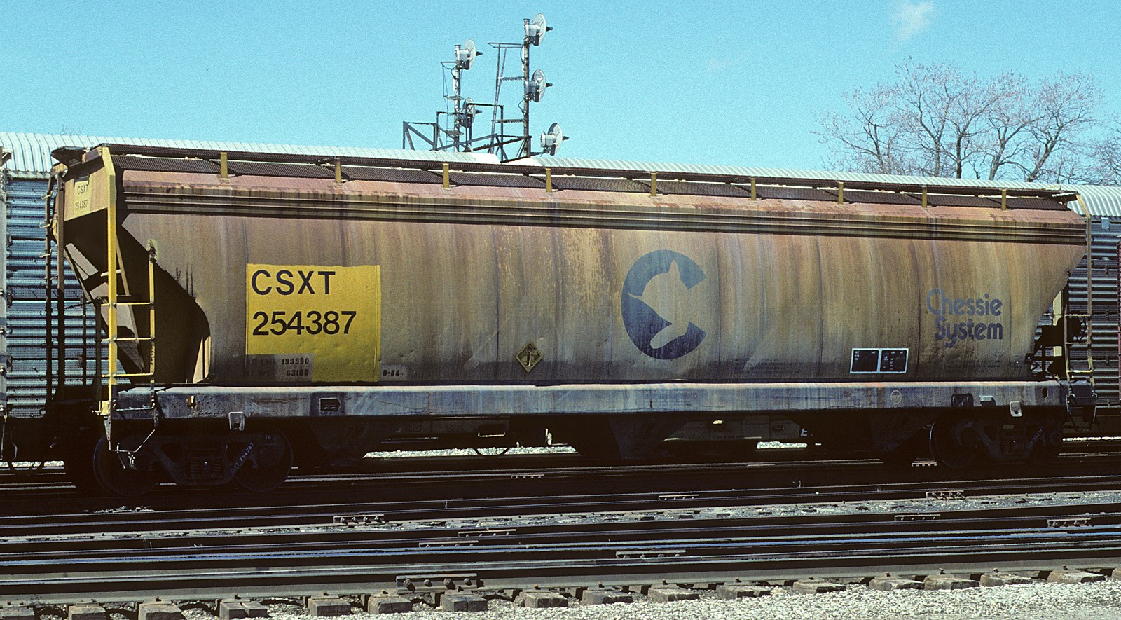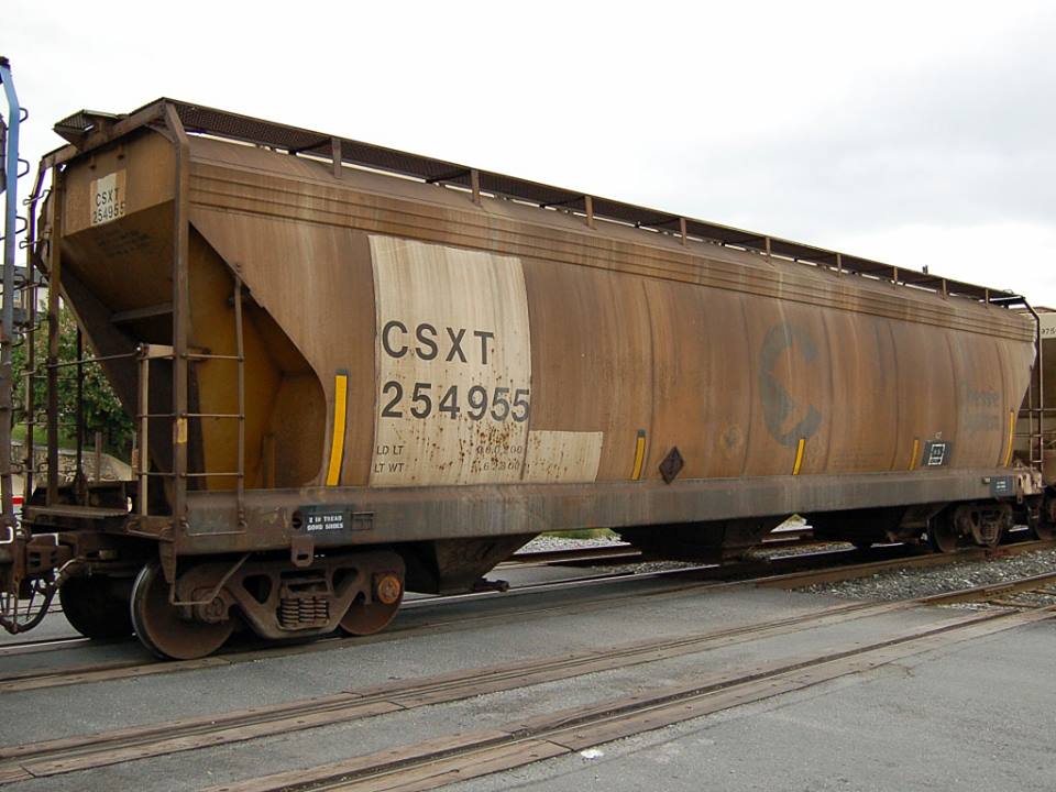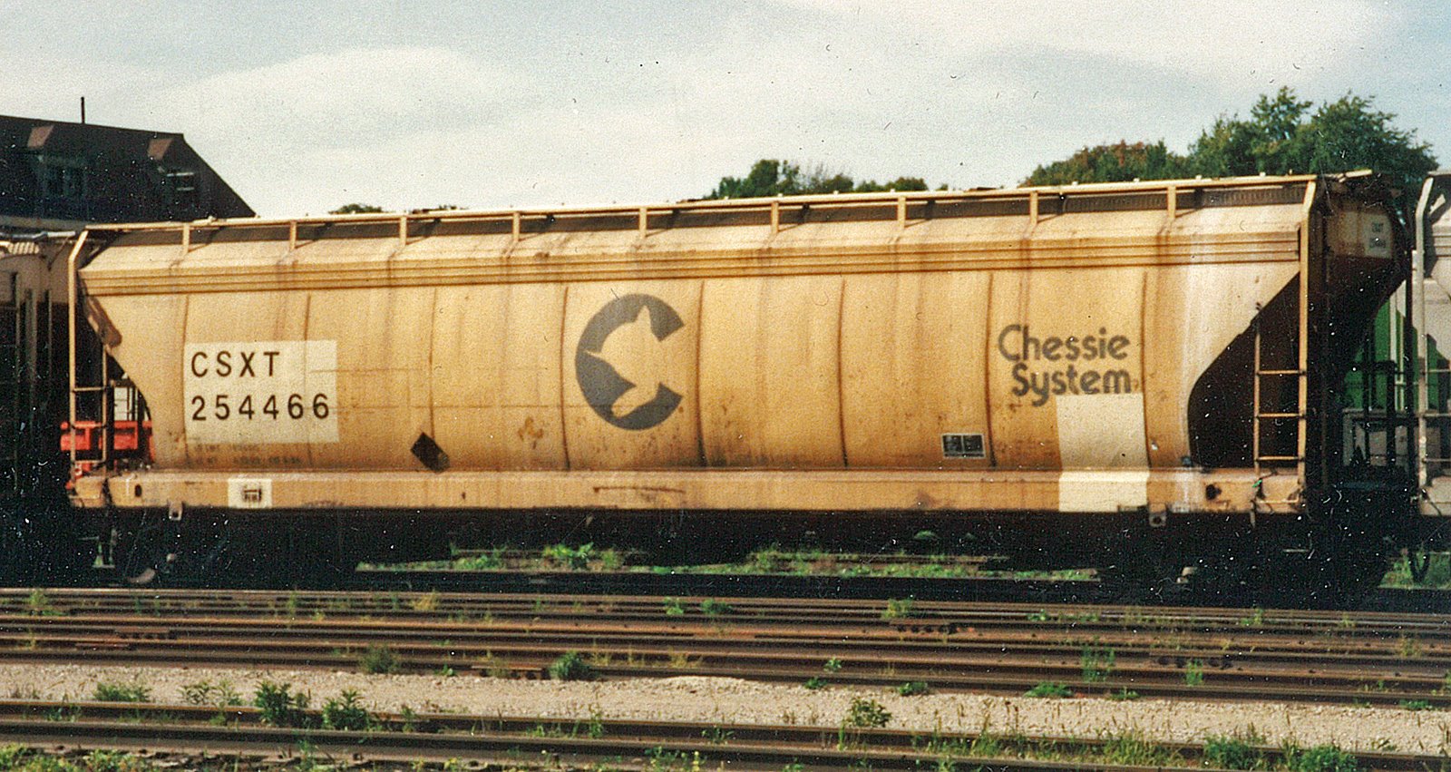 These 100 ton, 3-bay Center Flow covered hopper cars were built by ACFI as above. They featured 4600 ft3 capacity.