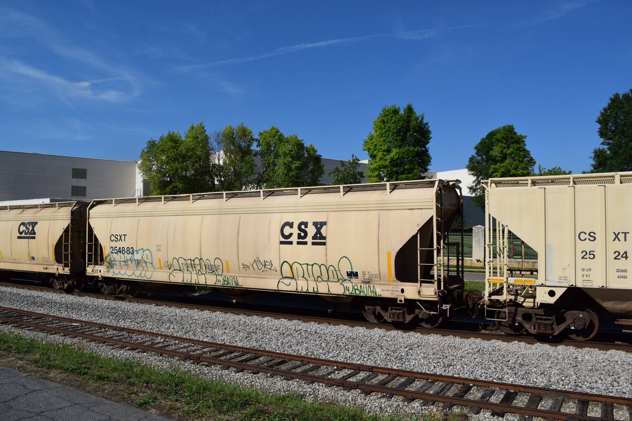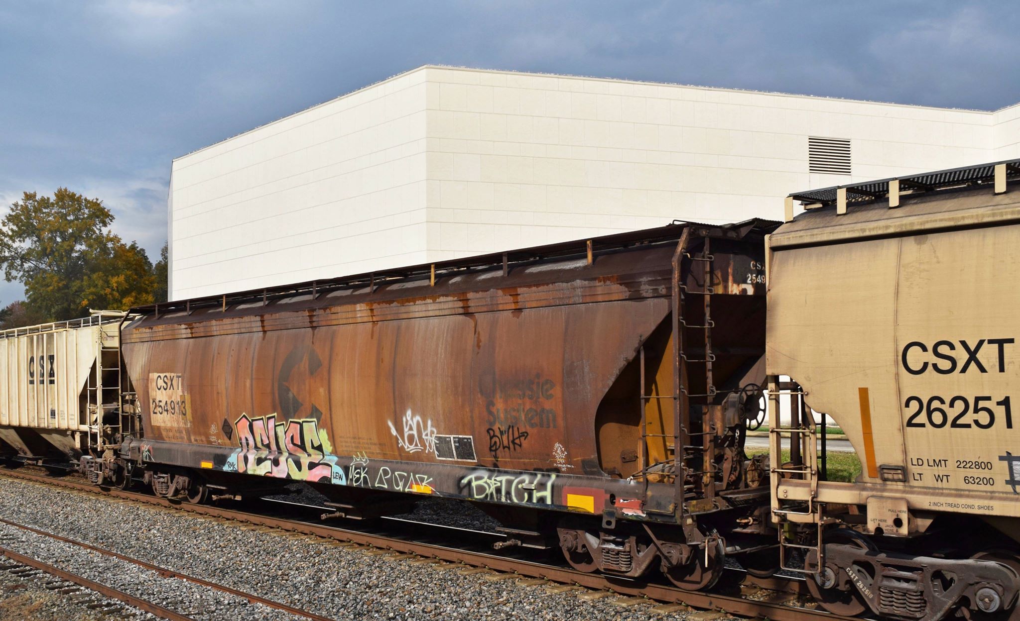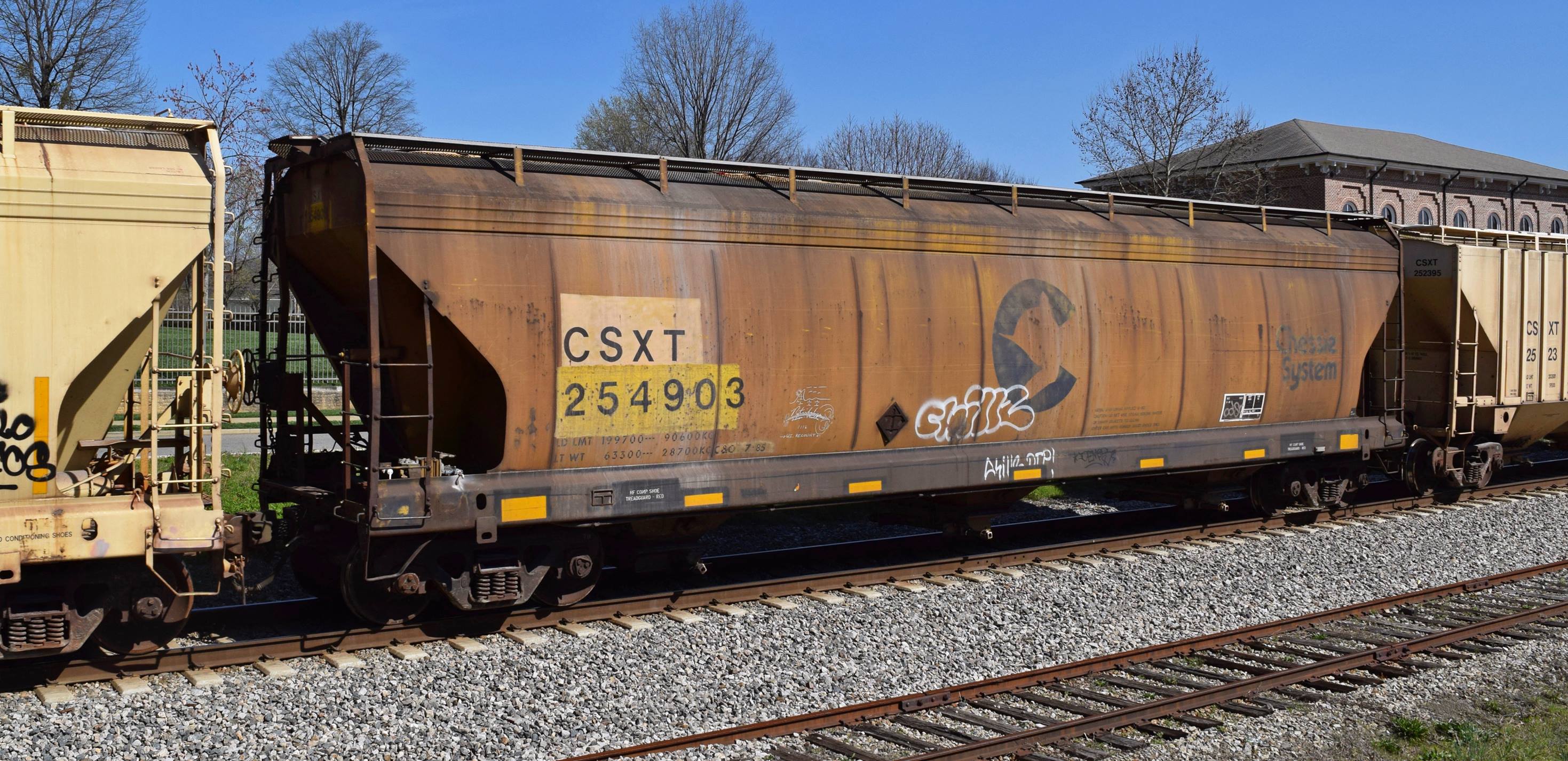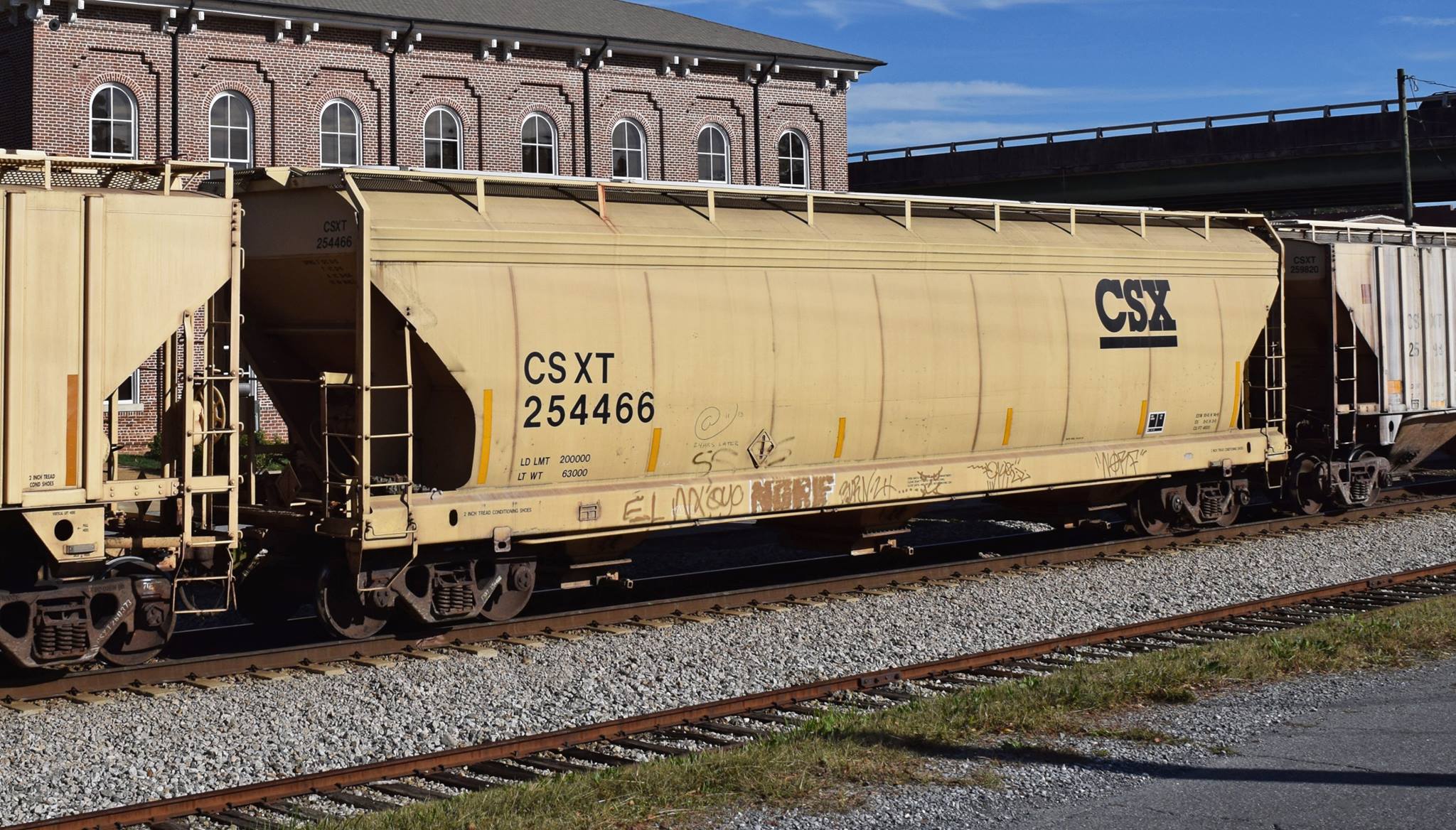 These 100 ton, 3-bay Center Flow covered hopper cars were built by ACFI as above. They featured 4600 ft3 capacity.