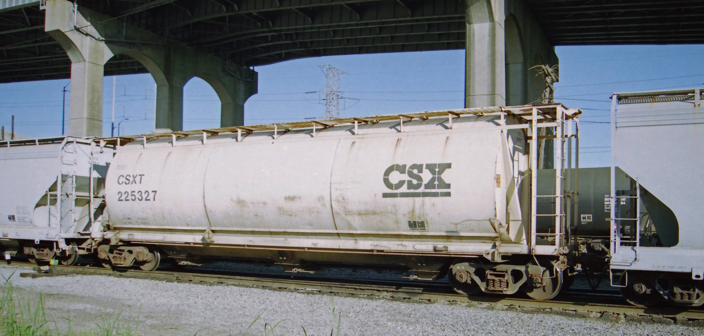 These 100 ton, 3-bay cylindrical Center Flow covered hopper cars were built by AC&F (lot 11-02226) in 9-10/1964. They featured 3700 ft3 capacity. They were assigned to class HC-17.
