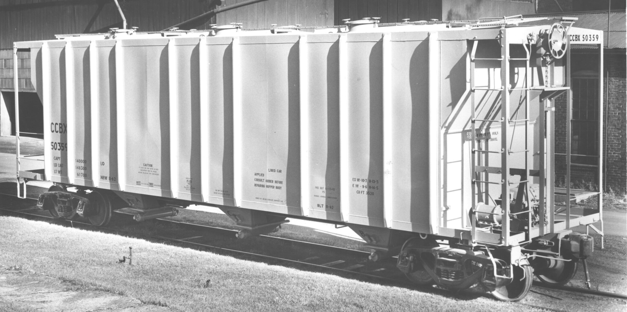 These 3-bay, 70-ton, covered hopper cars were built by PS (Lot 8750) in 10-11/1962. They featured 3520 ft3 capacity and were built as Chem-O-Vac cars.