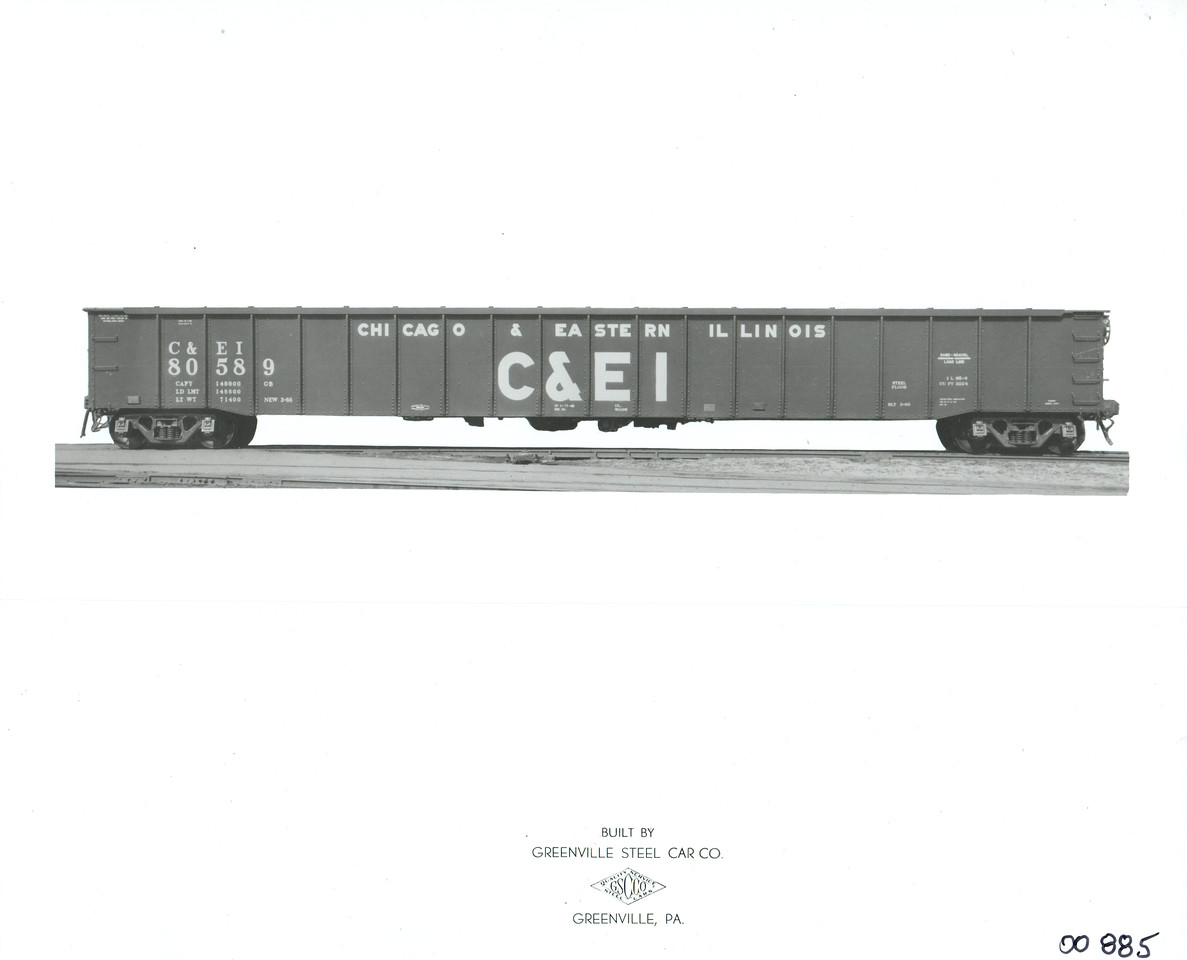 These 65'-1", 75 ton, gondolas were built by Greenville Steel Car Co. (Order 885) in 1/1966. They featured fishbelly side sills, fixed ends and 3222 ft3 capacity.