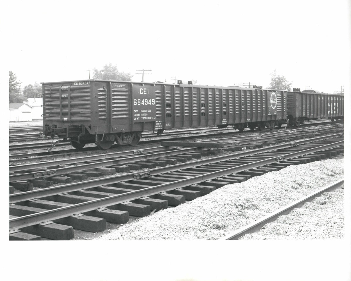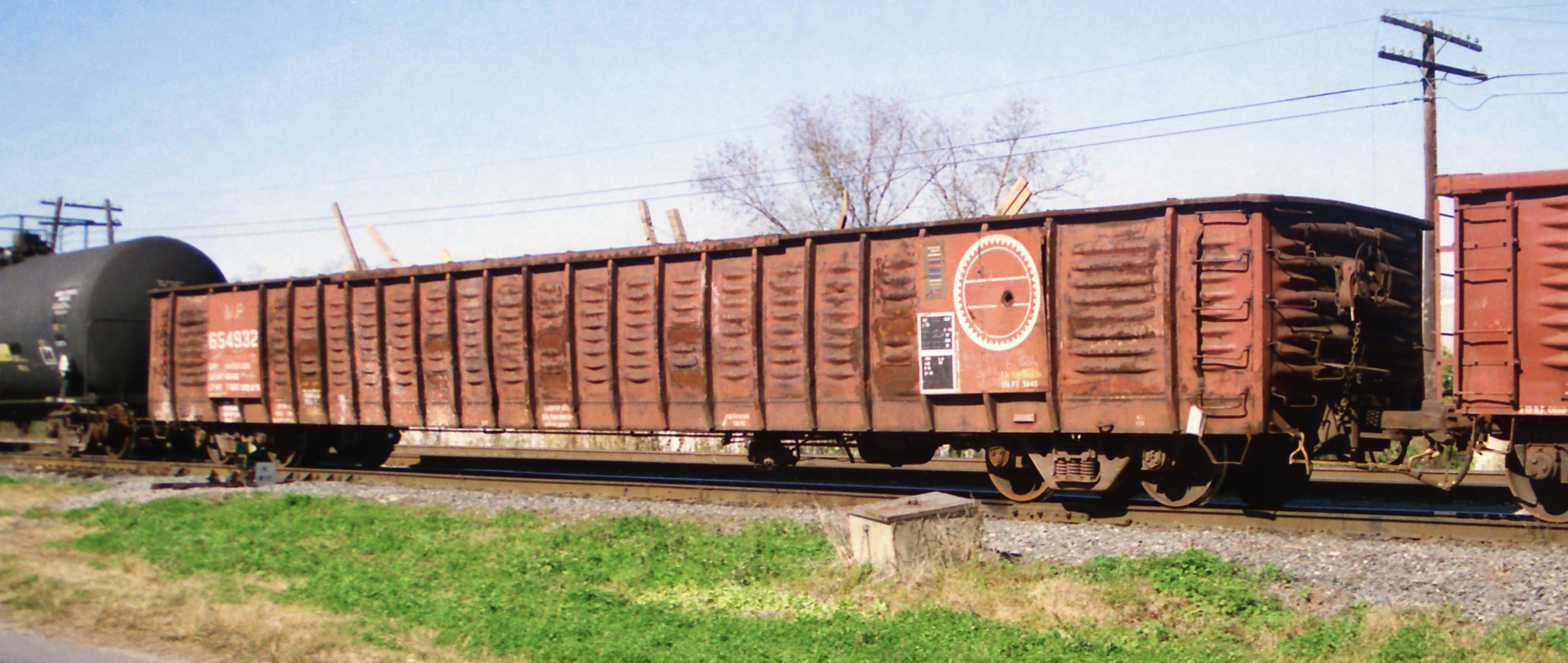These 65'-1", 90 ton, gondolas were built by Greenville Steel Car Co. in 1/1972. They featured corrugated sides, plates at each end for reporting marks/number and herald, noticably inset trucks and 3600 ft3 capacity, although they were stenciled as 3242 ft3.