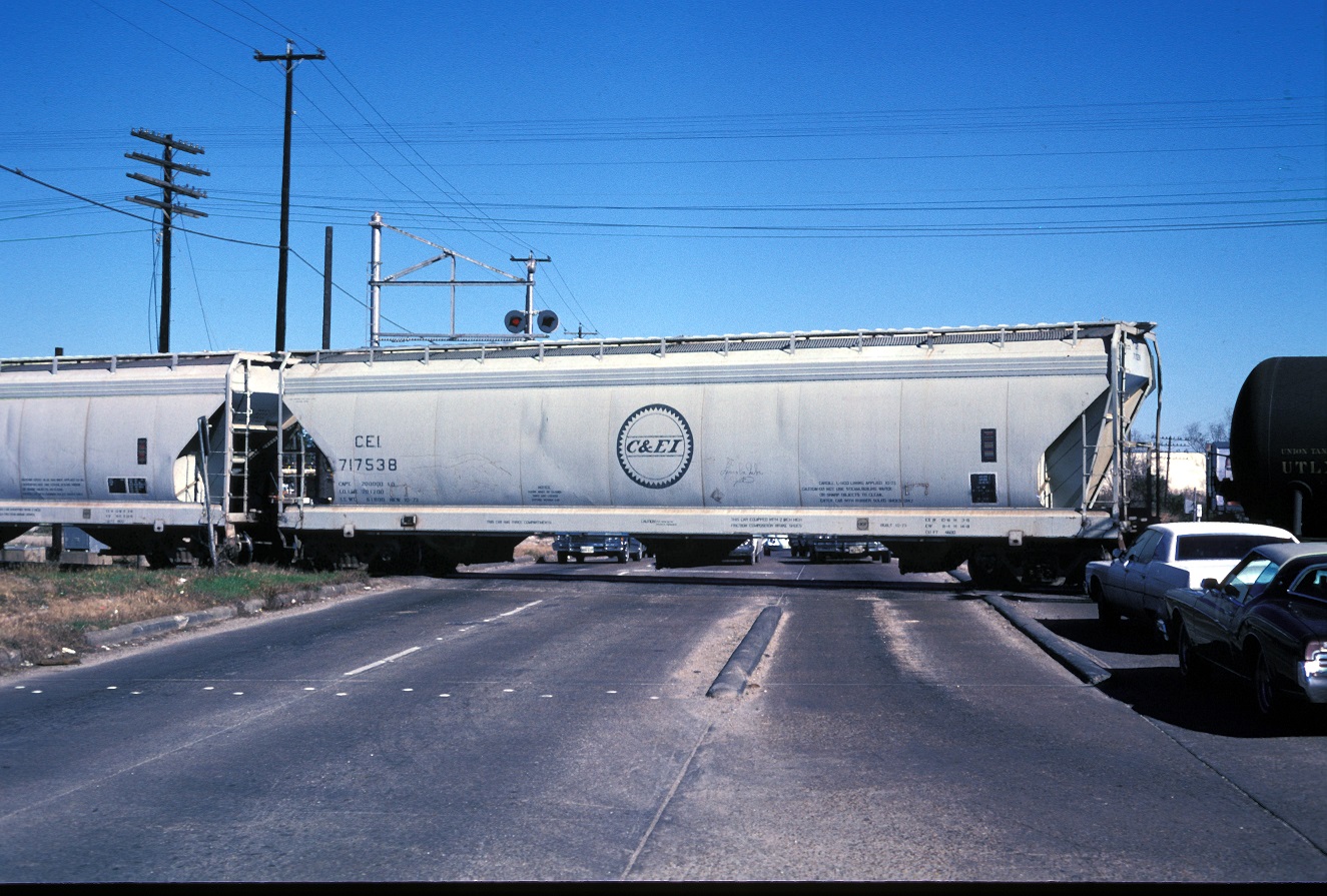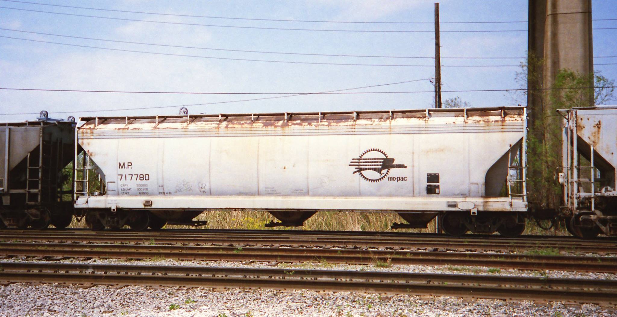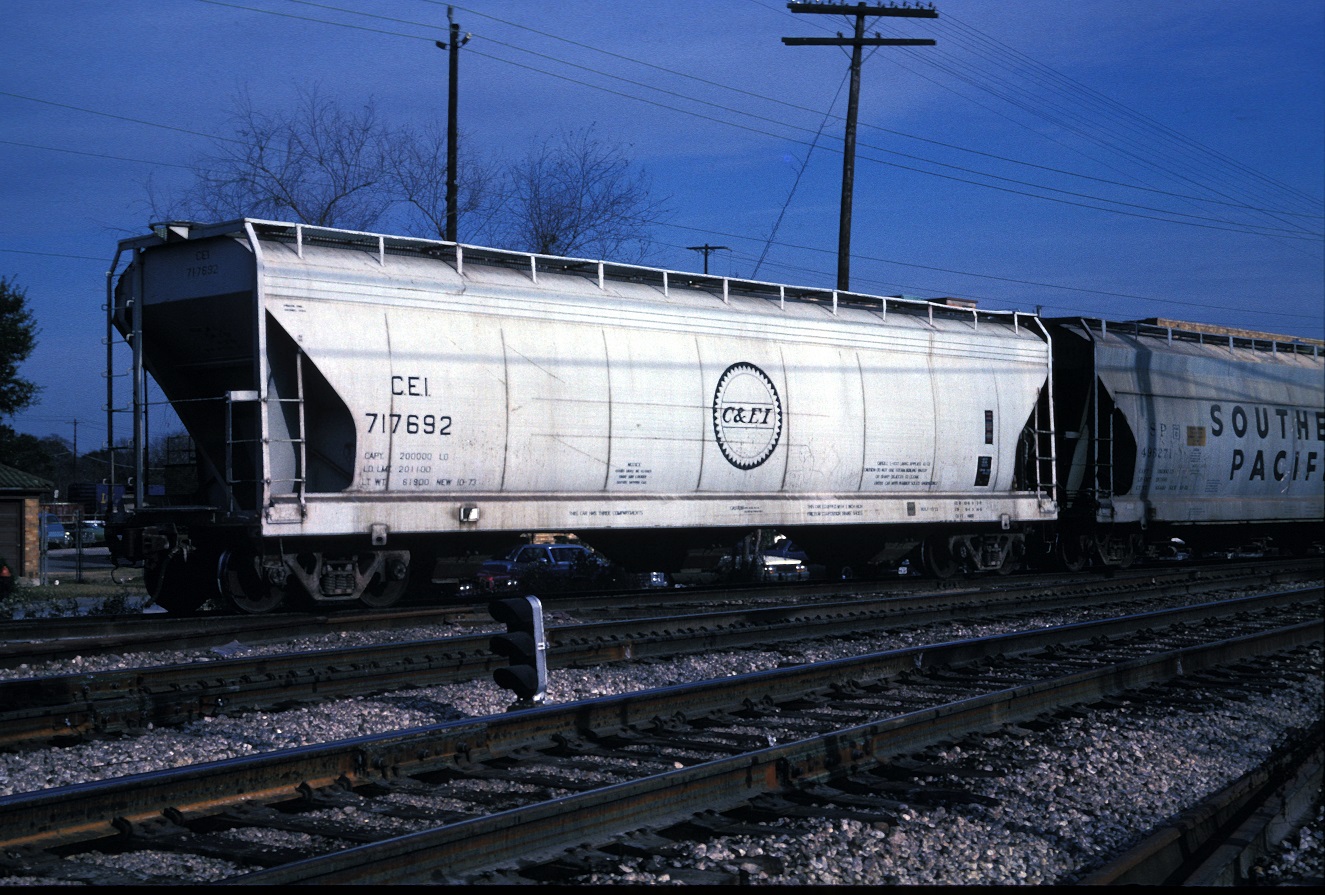 These 3-bay, 100-ton, covered hopper cars were built by AC&F (Lot 11-01280) in 10-11/1973. They featured 4600 ft3 capacity. The MP eventually renumbered many of the remaining C&EI cars with MP reporting marks. At least one (MP 717433) received an early version of post-merger UP lettering. At lease one car was relettered for MKTT (an MKT subsidiary in the state of Texas) with the same road number. More info on is needed on this such as when the change took place and why. It is presumed that it was done by UP which owned both roads at the time.