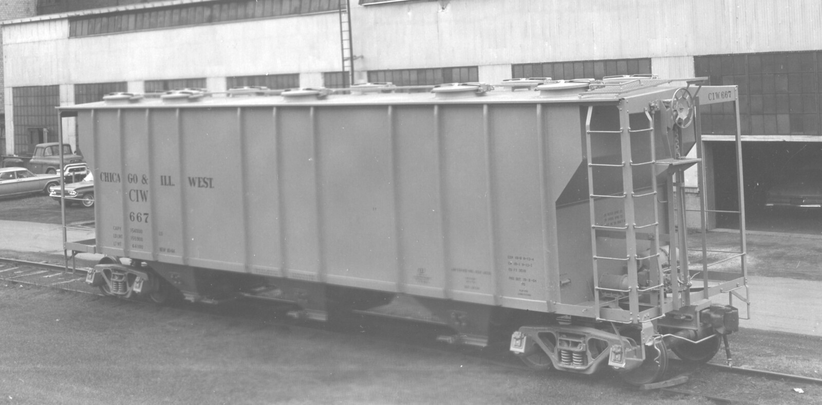 These 3-bay covered hoppers were built by PS (Lot 8928A) in 10/1964. They featured 3510 ft3 capacity.