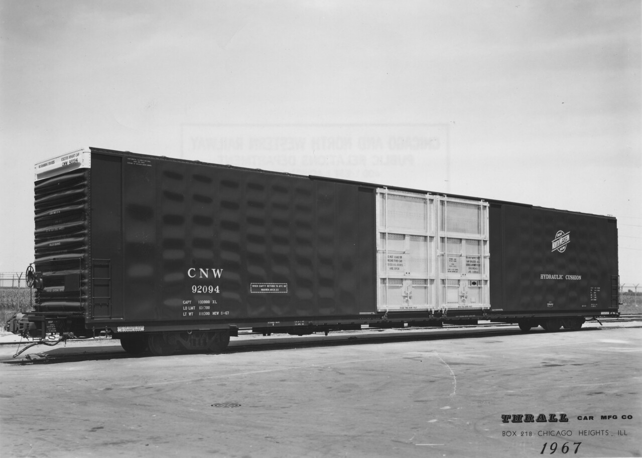 These 86'-6", 50-ton, hi-cube box cars were built by Thrall (Job 365) in 8/1967. They featured 10,000 ft3 capacity.