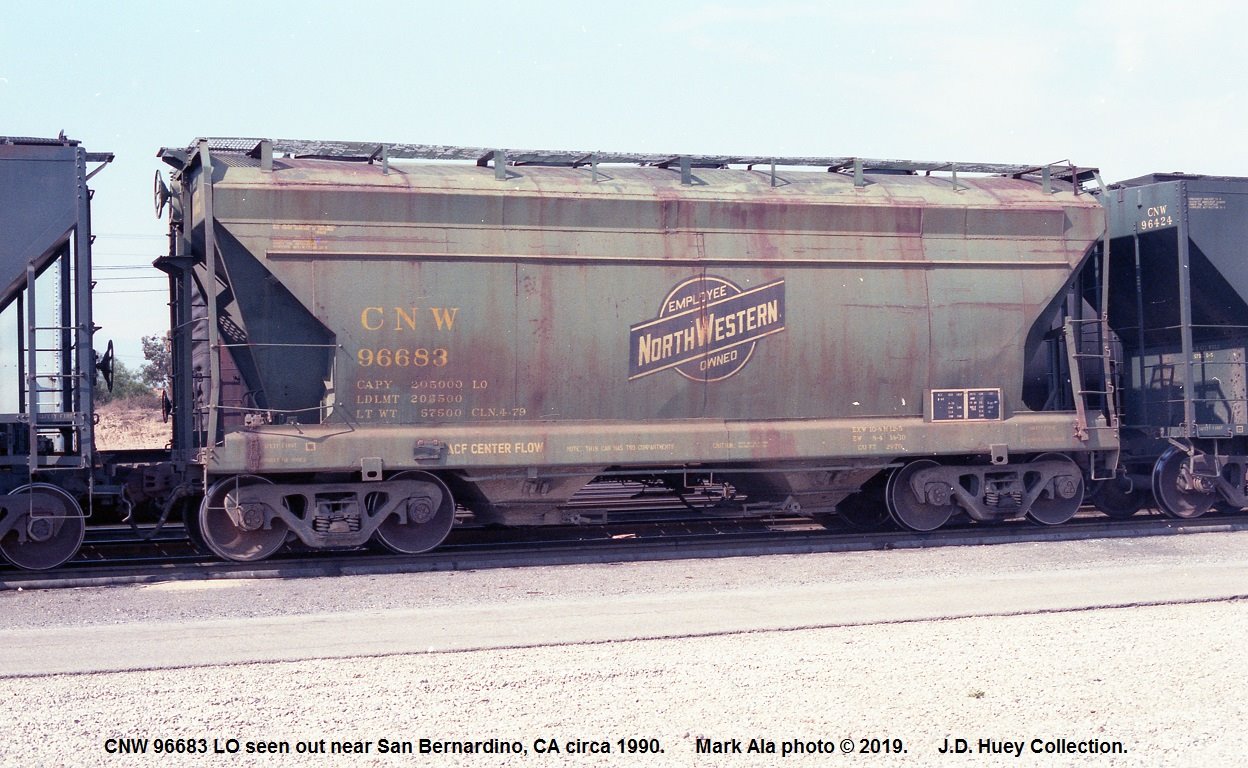 These 2-bay, 100-ton, covered hoppers were built by AC&F (Lot 11-02475) in 8-9/1966 as CF2970 cars. They featured 2970 ft3 capacity.