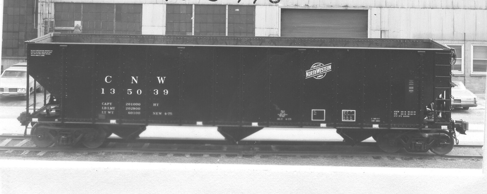 These 100-ton, 3-bay open hoppers were built by PS (Lot 9869) in 4/1975. They featured a rotatry coupler on one end (denoted by white marking) and 4000 ft3 capacity.