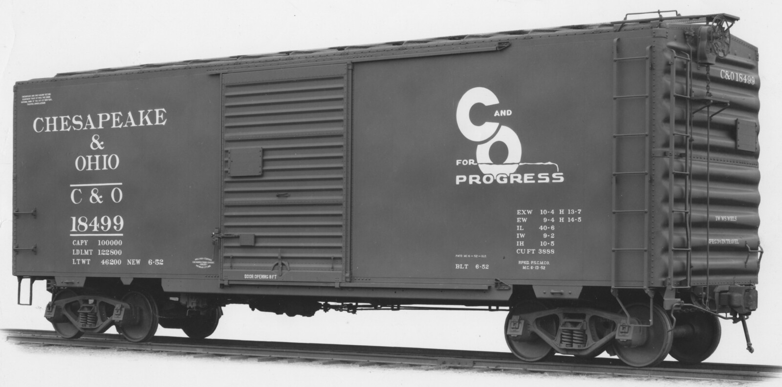 These 40-6", 50 ton, box cars were built by PS (Lot 8037) in 6/1952 as PS-1's. They featured 3888 ft3 capacity.