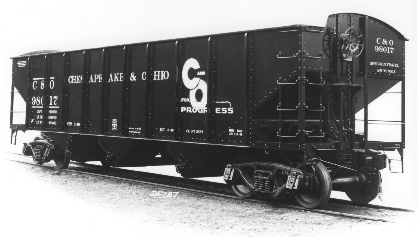 These 70 ton, 3-bay open hopper cars were built by Bethlehem Steel Corp. (Lot DF-127) in 2-4/1949. They featured notched heap shields and 2556 ft3 capacity.