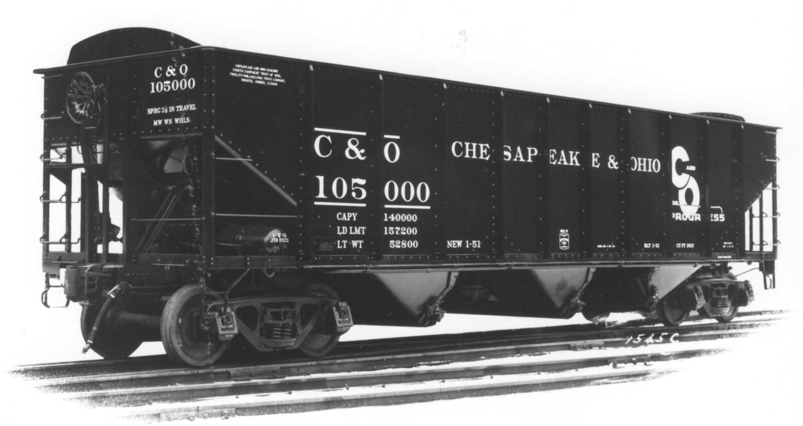 These 70 ton, 3-bay open hopper cars were built by Bethlehem Steel Corp. (Lot DF-152) in 1-3/1951. They featured heap shields and 2622 ft3 capacity.