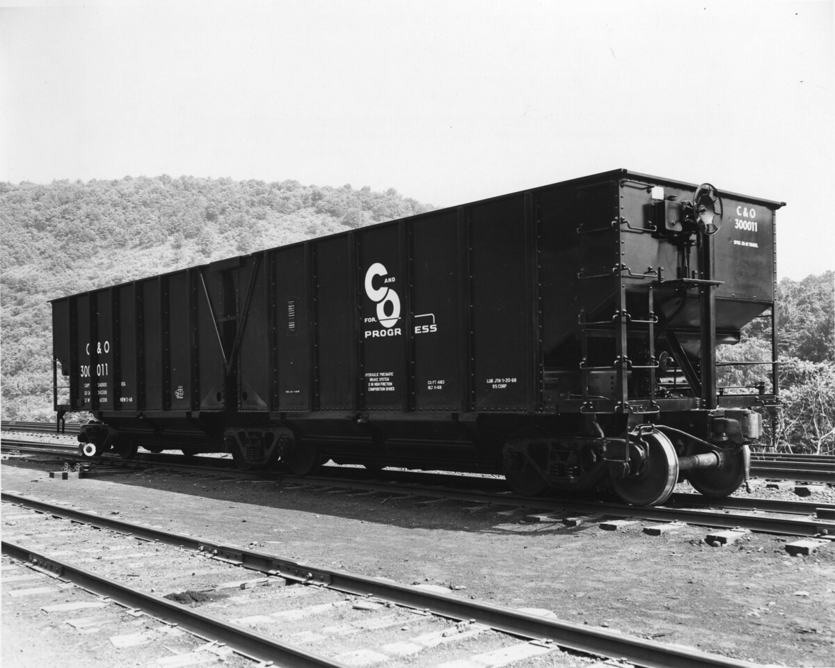 This 120 ton, articulated open hopper car was built by Bethlehem Steel Corp. (Order 3400-109) in 11/1968. It featured longitudinal discharge gates and 4183 ft3 capacity. It was surely an experiment and does not appear to have been repeated.