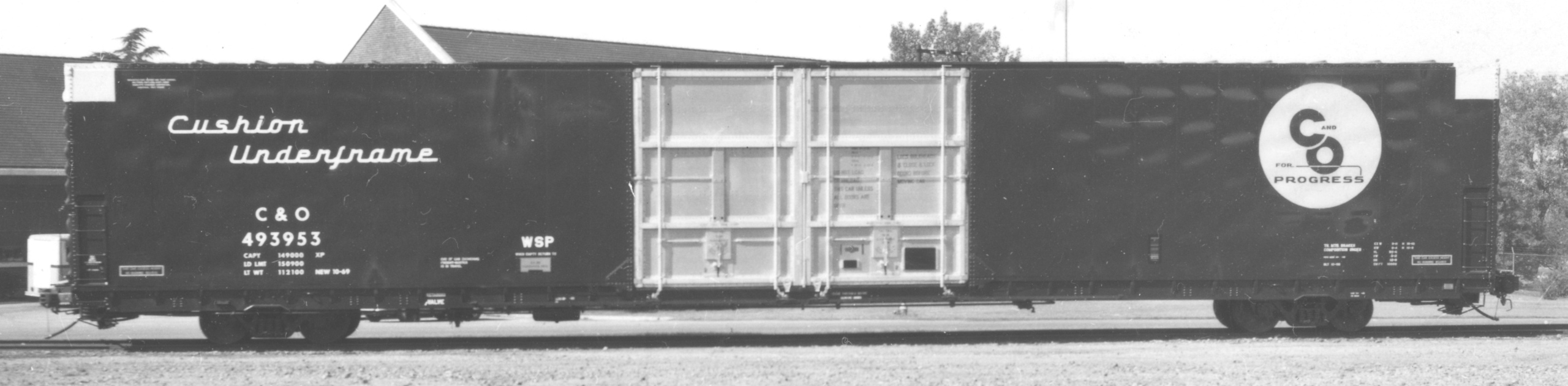 These 86'-6", 75 ton hi-cube box cars were built by PS (Lot 9424A) in 10/1969. They featured 1x20' plug doors, 15" FM cushioned underframes and 10,000 ft3 capacity.