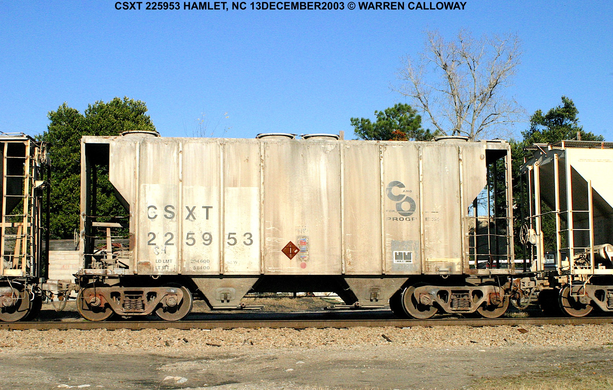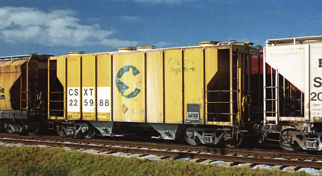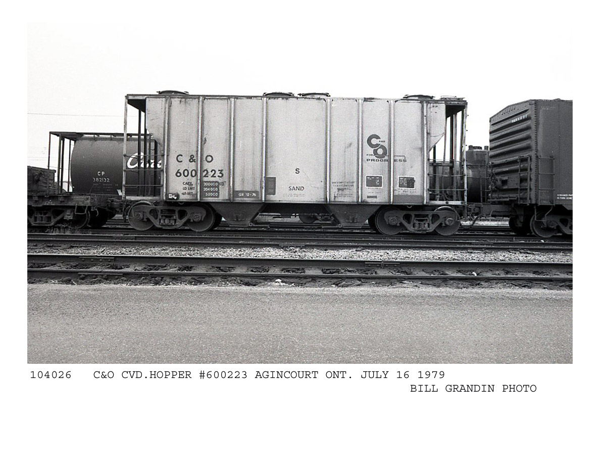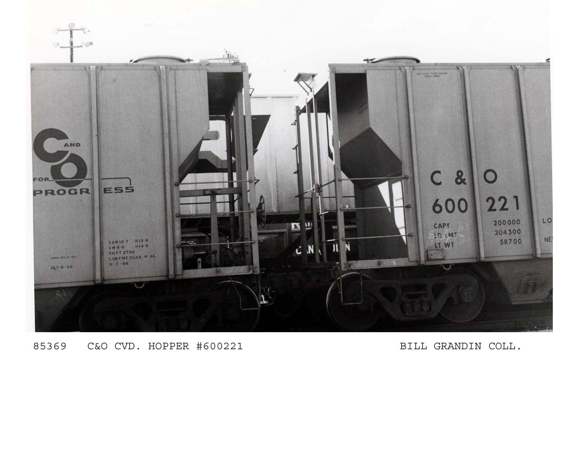 These 100 ton, 2-bay covered hopper cars were built by FMC (Lot 65-22) in 8-12/1966. They featured 2700 ft3 capacity. They were assigned to Chessie System class H-21.