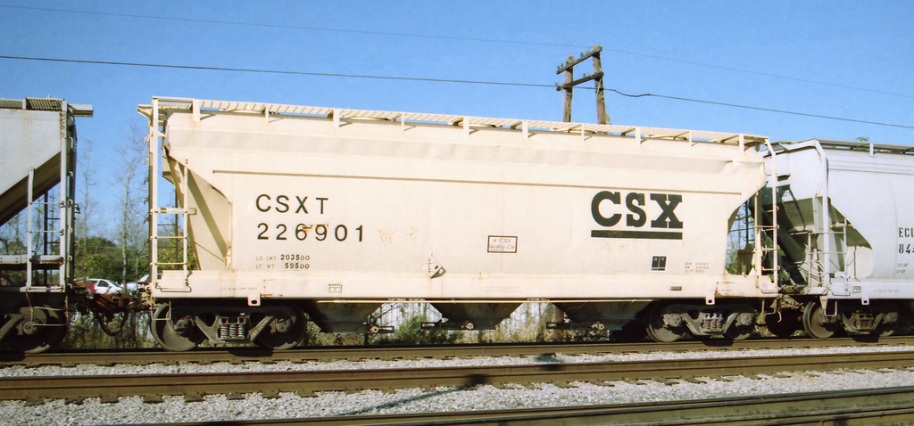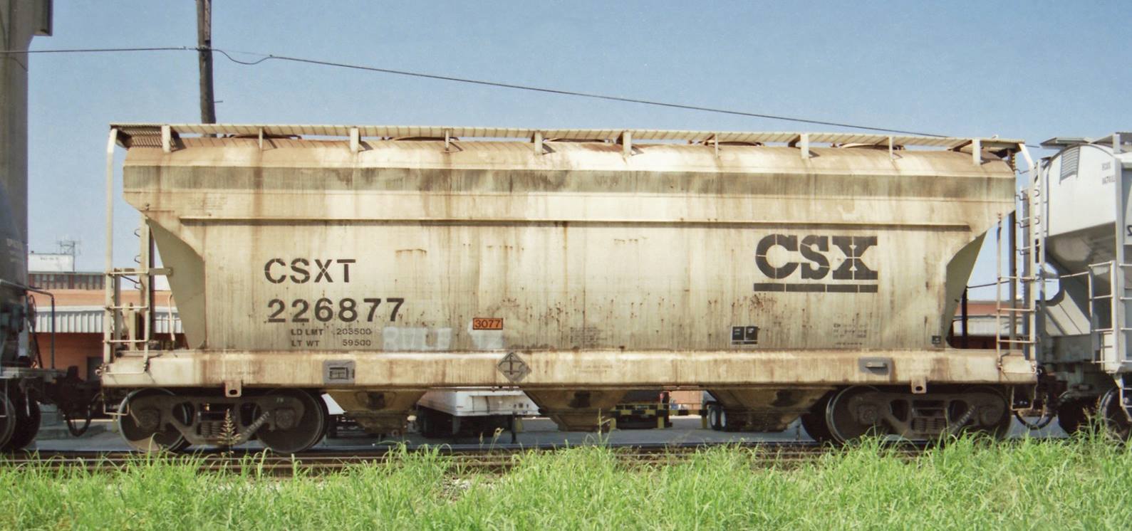 These 100 ton, 3-bay covered hopper cars were built by AC&F in 5-6/1970. They featured 3560 ft3 capacity. They were assigned to class HC-29A.