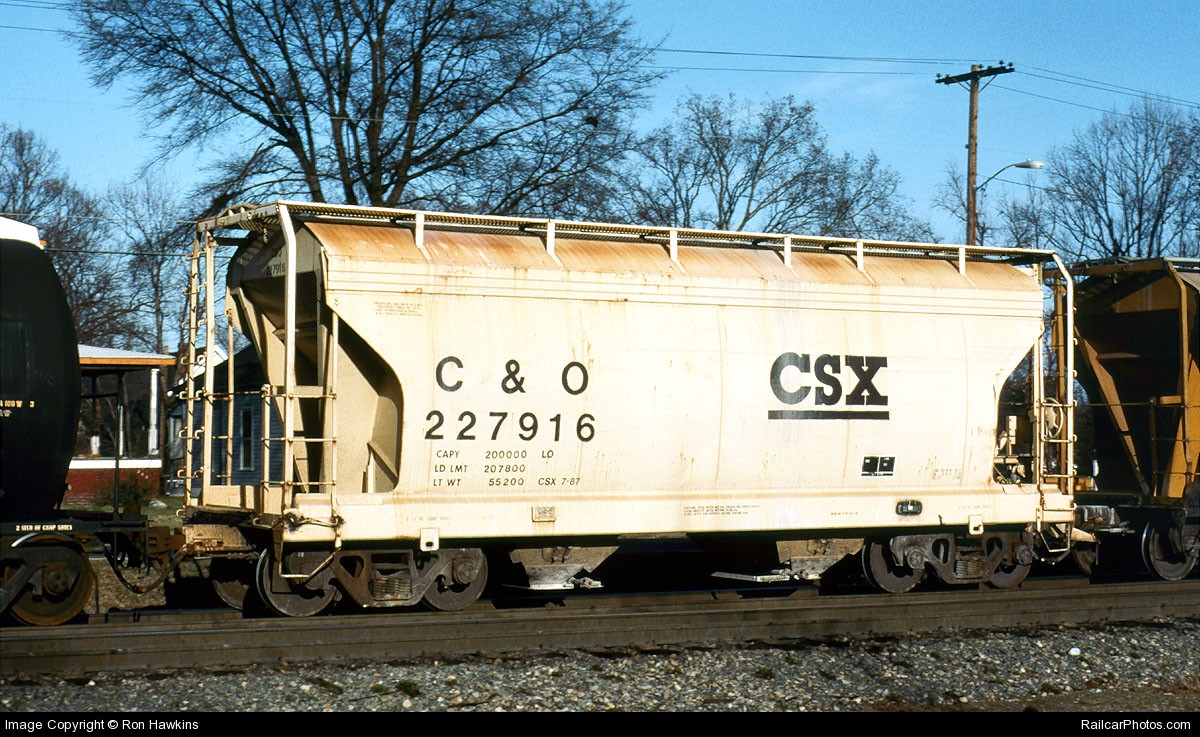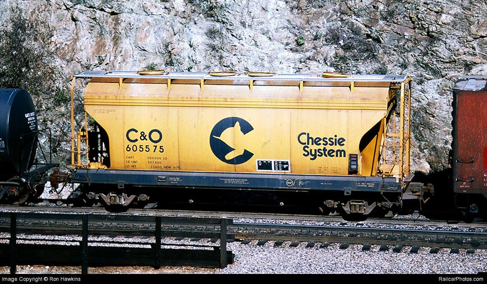 These 100 ton, 2-bay covered hopper cars were built by ACFI (Lot 11-01055) in 6/1976. They featured 2700 ft3 capacity. They were assigned to C&O class HC-44.