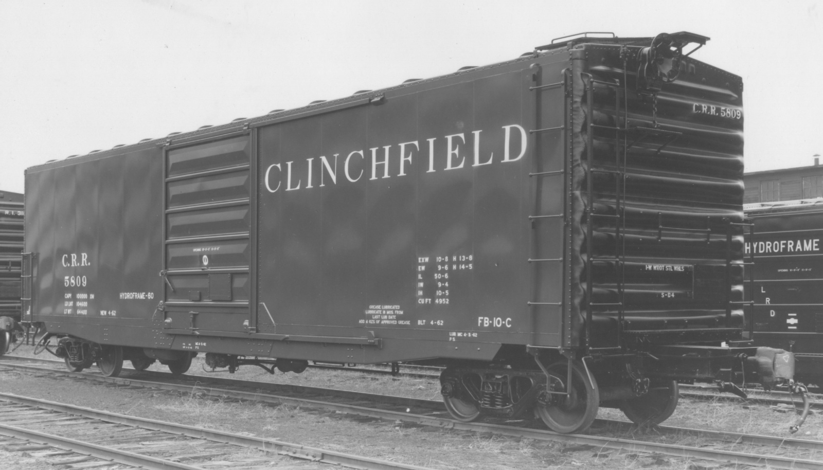 These 50'-6", 50 ton, box cars were built by PS (Lot 8678) in 3/1962? They featured Hydroframe 60 underframes, 9' doors and 4952 ft3 capacity. It appears that they were originally intended to be numbered CRR 5808-5809, but were diverted to CRR 7000-7001 very early on, possibly due to the fact that they were equipped with cushioned underframes and Clinchfield wanted to group those cars together in the 7000 number series. They were assigned to class FB10C withe the C apparently standing for Cushioned underframe.