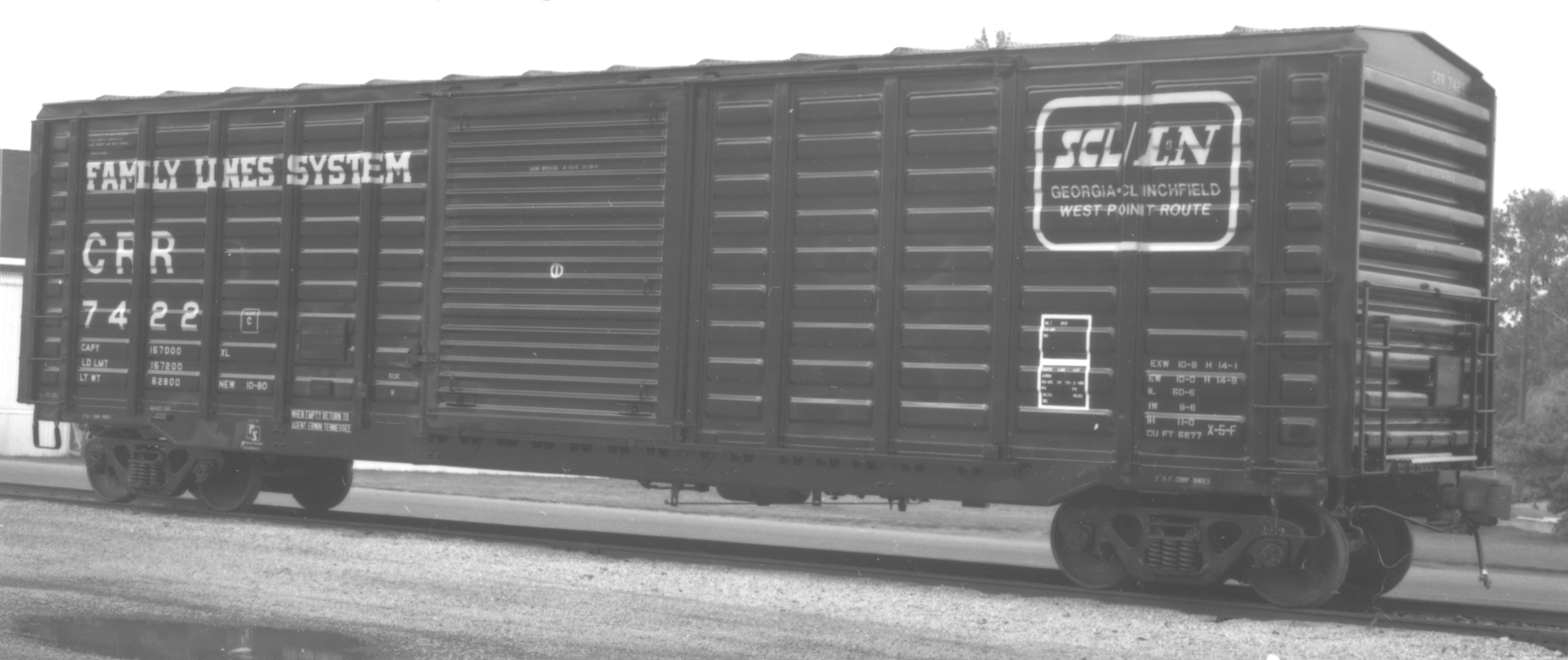 These 50'-6", 70 ton, box cars were built by PS (Lot 1107B) in 9-10/1980. They featured 5277 ft3 capacity. They were assigned to class X-5-F.