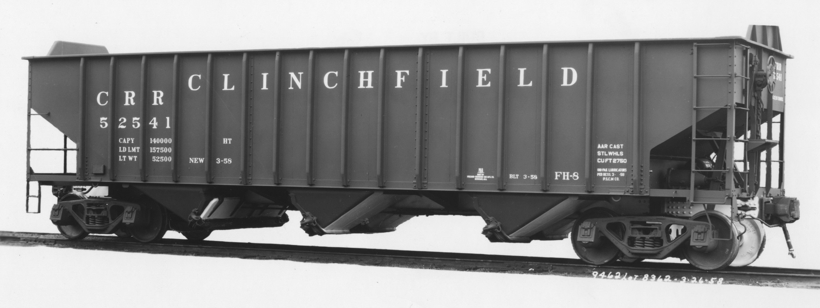 These 3-bay, 70 ton, open hopper cars were built by PS (Lot 8362) in 3/1958 as PS-3's. They featured 2750 ft3 capacity. They were assigned to class FH8.