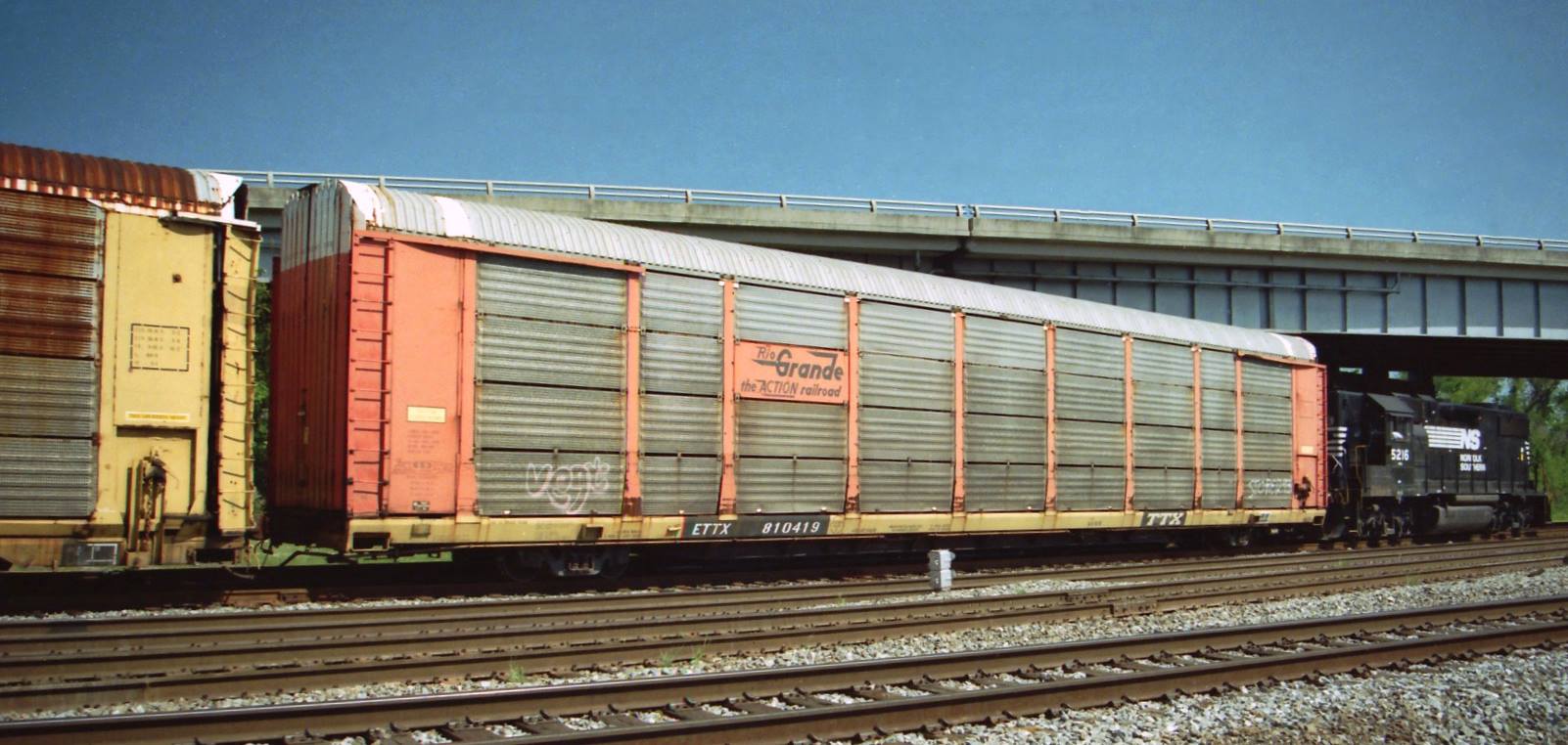 This page is dedicated to freight cars leased by the D&RGW and marked with the railroad name and/or logo, but bearing other reporting marks. This list includes D&RGW auto racks mounted on TTX 89' flat cars