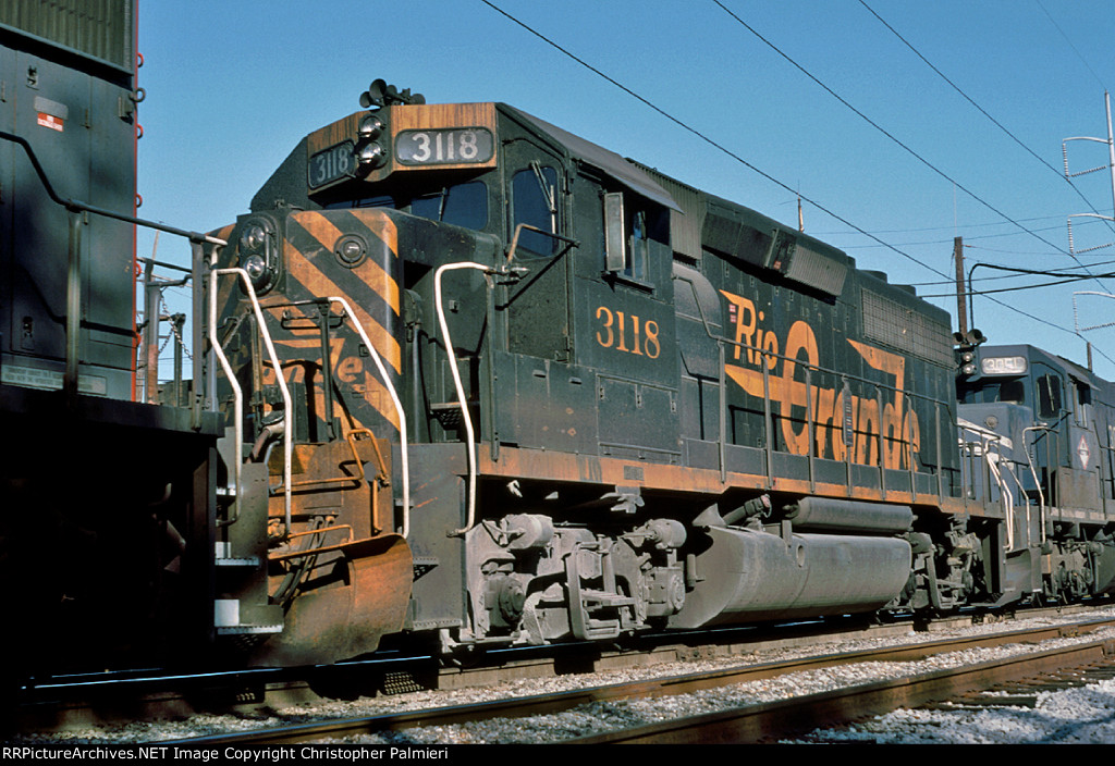 This loco was built in 9/1974 with EMD frame number 74635-3. It was built as a freight engine. It was painted in standard for the time black paint with xxxx herald and featured a full a sealed beam headlight and nose-mounted gyralight on the front end and a sealed beam headlight on the rear end.