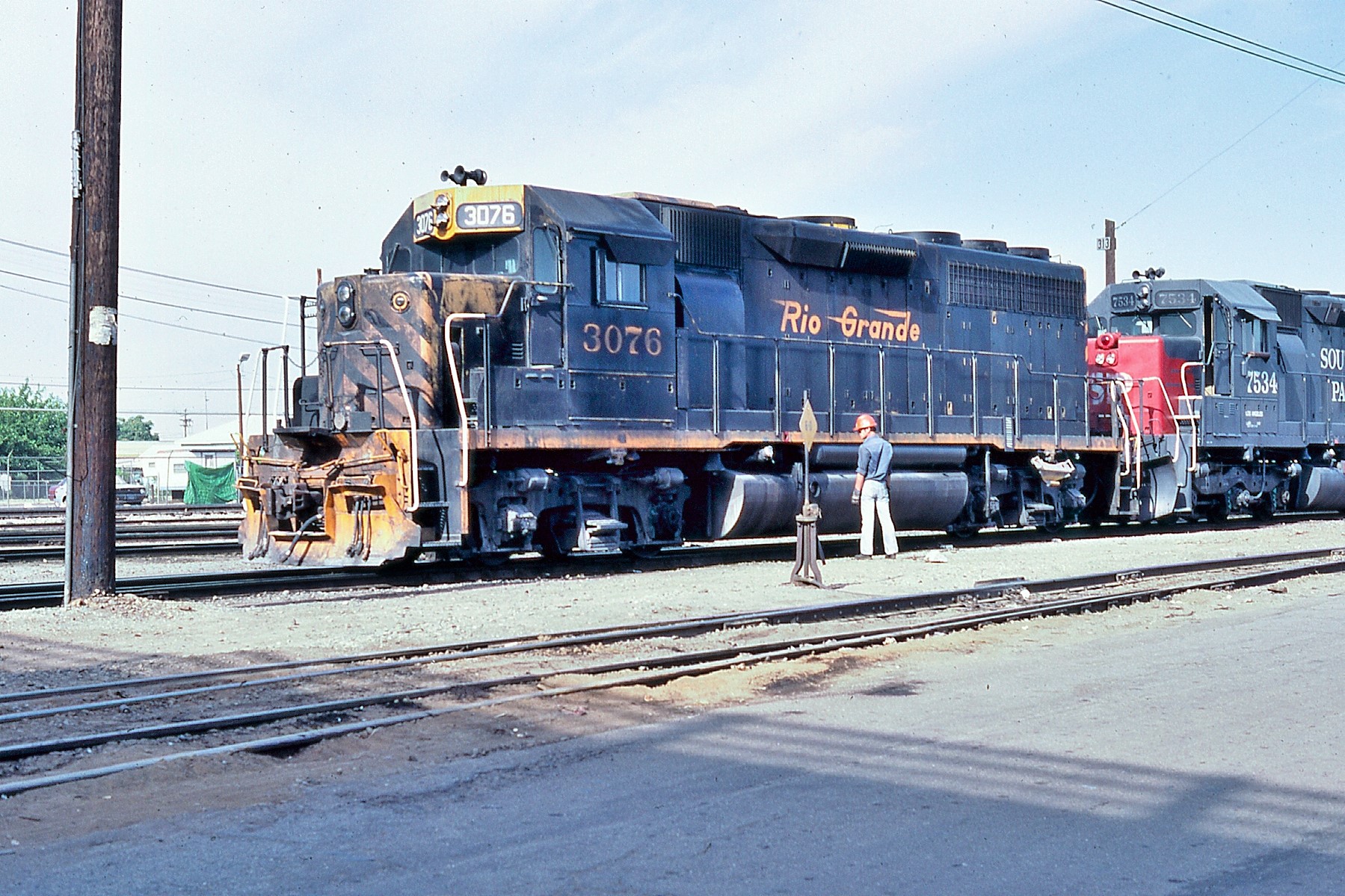 This loco was built in 2/1967 with EMD serial number 32887. She was built as a freight roadswitcher. She was painted in standard for the time black paint with xxxx herald and featured a full a sealed beam headlight and nose-mounted gyralight on the front end and a sealed beam headlight on the rear end.
