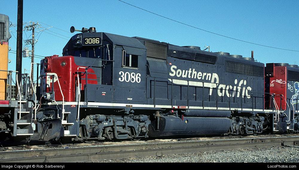She was one of three D&RGW GP40s painted in SP's scarlet and grey "bloody nose" scheme with SP Speed Lettering after the Rio Grande/SP merger.