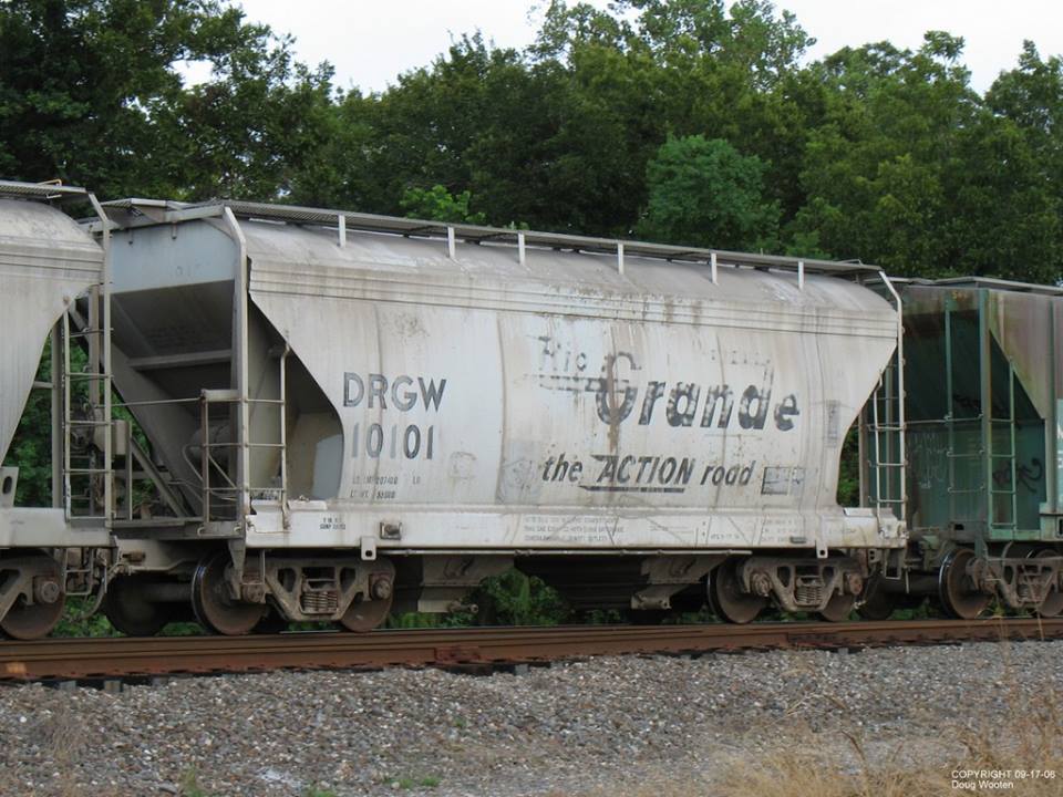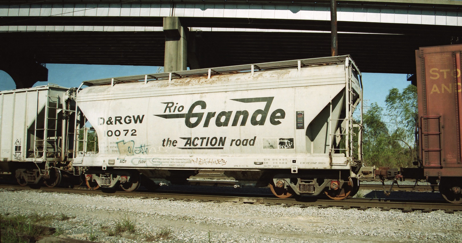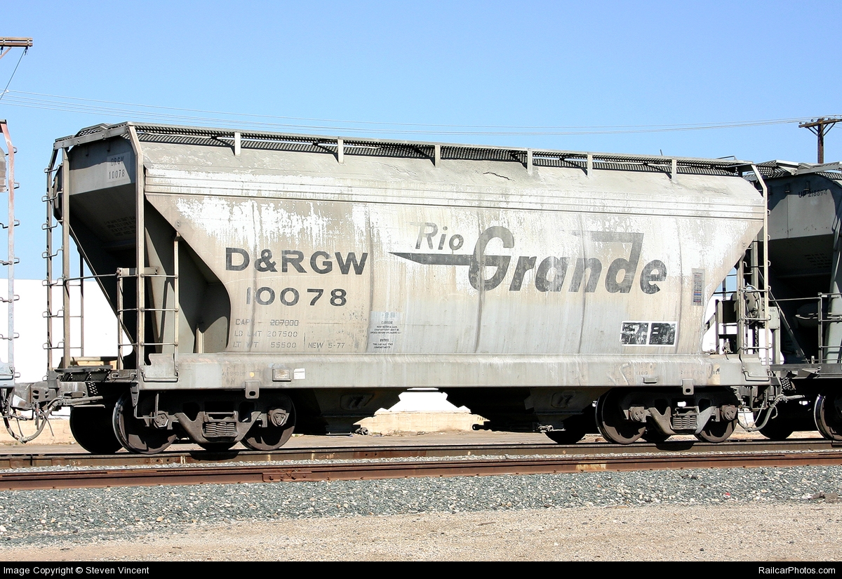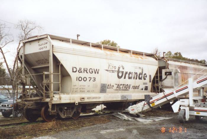 These 2-bay, 100-ton covered hoppers were built by AC&F in 7/1977. They featured round hatches, gravity-pneumatic outlets and 2980 ft3 capacity. They are the CF2980 variant with slightly larger stated capacity, but sharing the external dimensions with the earlier CF2970 cars, but NOT those of the middle CF2971 cars as per the following: