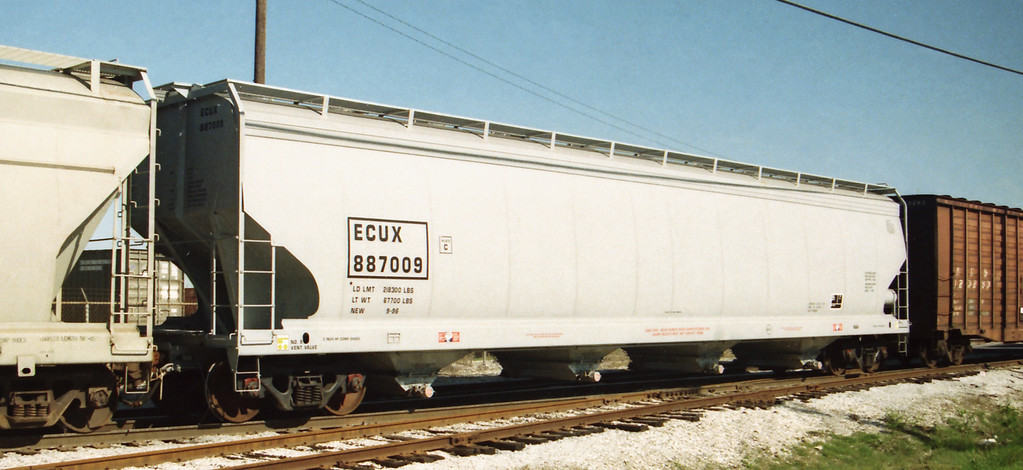 These 4-bay, 100 ton, covered hopper cars were built by AC&F in 10-11/1996. They featured 6224 ft3 capacity.