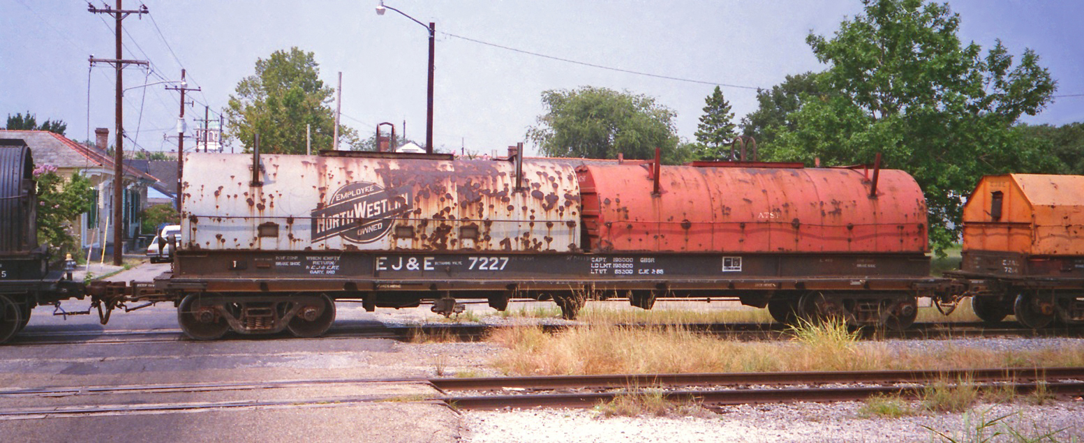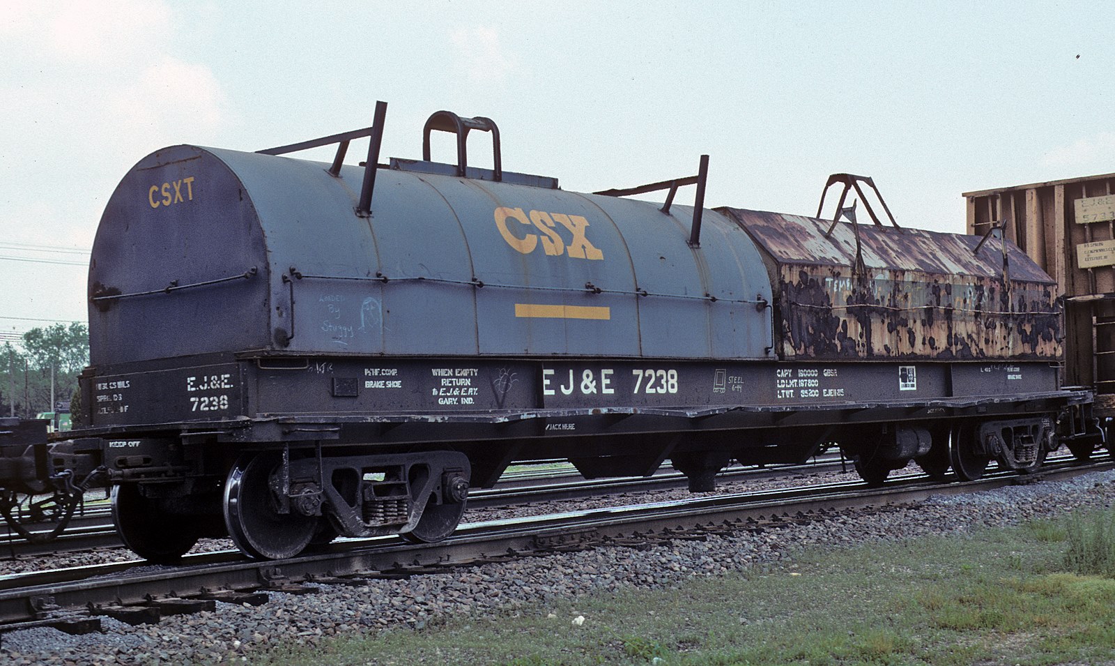 These 48'-0", 100 ton coil steel gondolas were built by Evans-USRE (lot 860) in 1969. They featured two hoods and 1325 ft3 capacity.