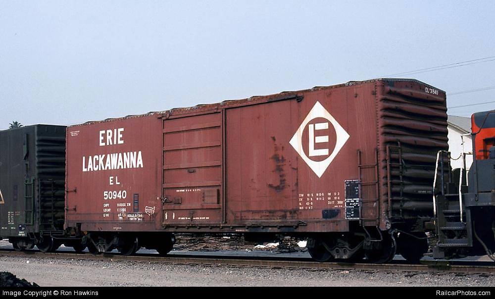 These 40'-6", 50-ton, box cars were rebuilt by USRE (Lot 652) in 1967-68 from various BM, DLW, ERIE and GM&O boxcars. As rebuilt, they featured 3850 ft3 capacity and 8' sliding doors.