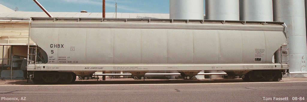 These 4-bay, 95-ton, covered hoppers were built by AC&F in 11/1982. They featured 5700 ft3 capacity. They were built as CF5701 cars.