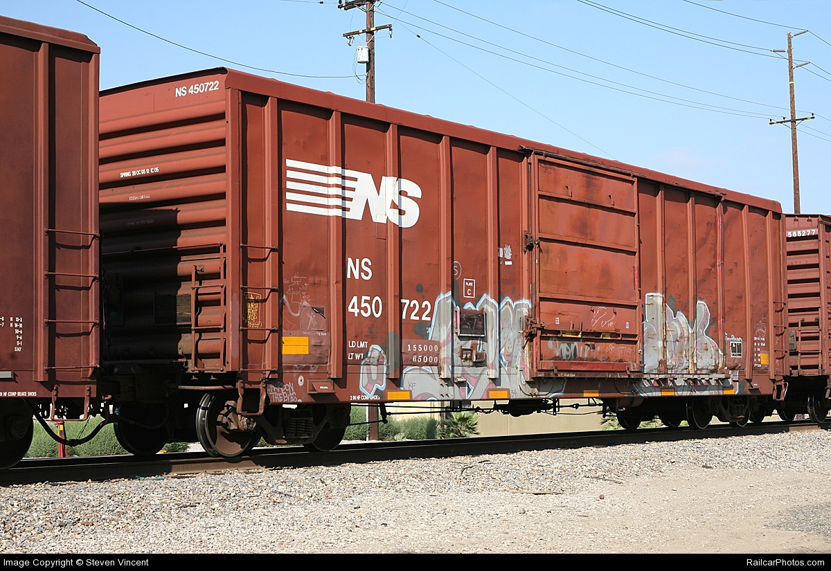 These 50'-6", 70-ton box cars were built by PS (Lot 1043A) in 8-9/1979. They featured 10' sliding Youngstown doors and 5344 ft3 capacity. They were assigned to N&W (and later NS) class B-147.