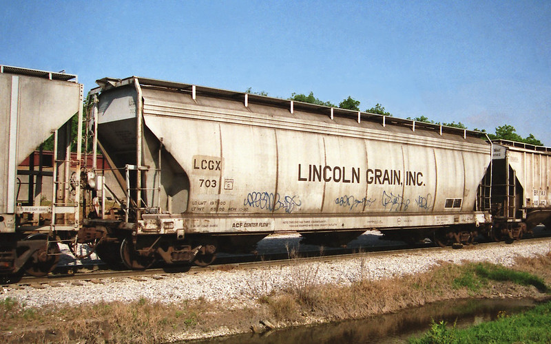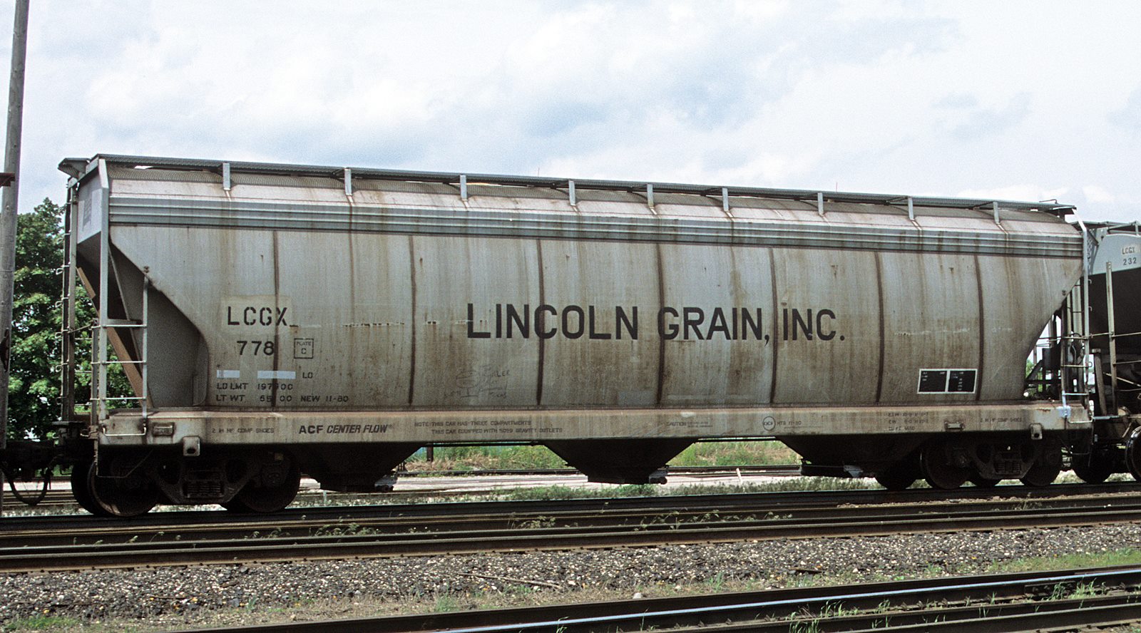 These 3-bay, 100-ton, covered hopper cars were built by AC&F in 10-11/1980 for Lincoln Grain. They featured 4650 ft3 capacity.