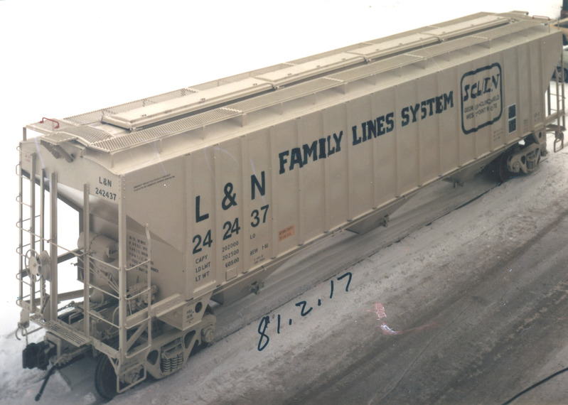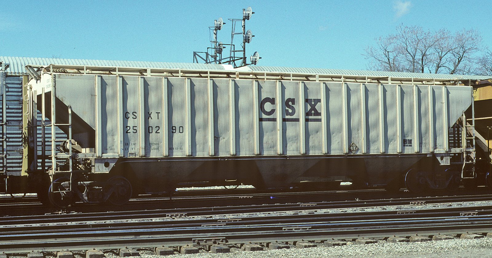 These 3-bay, 100 ton, covered hopper cars were built by PS (Lot 1110B) in 10/1980=01/1981. They featured 4750 ft3 capacity.