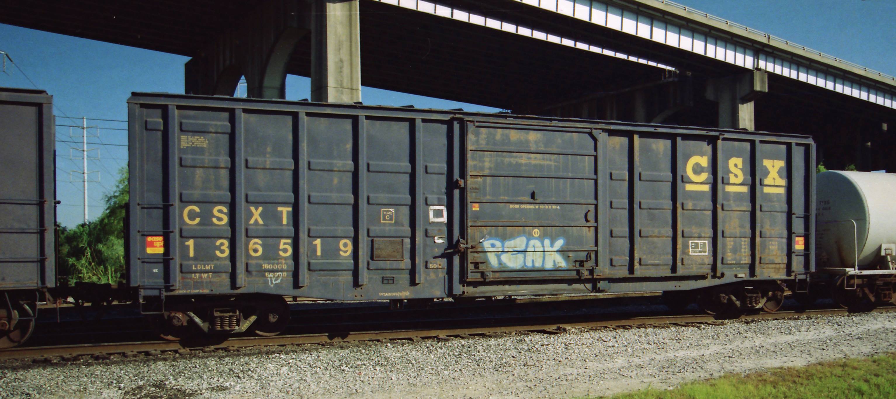 These 50'-6", 80-ton, box cars were built by PS (Lot 9786) in 11-12/1974. They featured 10' Youngstown sliding doors, 4-waffle pattern sides and 5277 ft3 capacity.