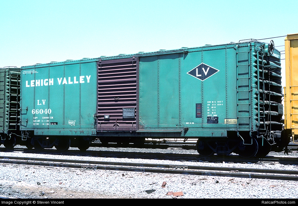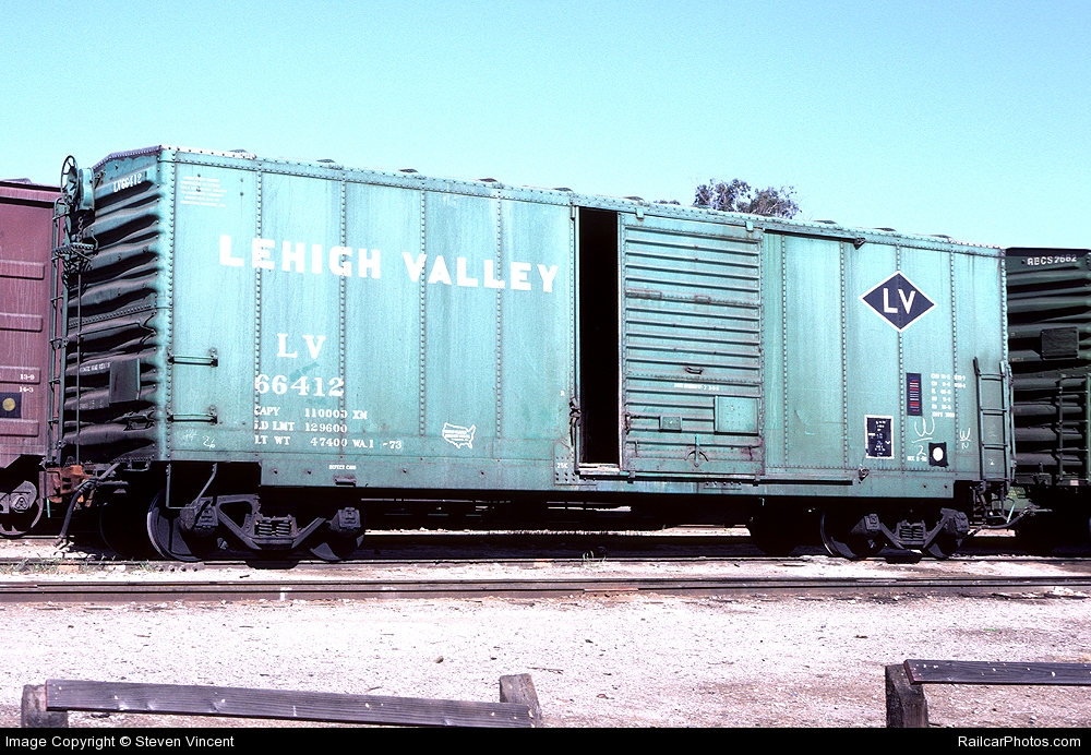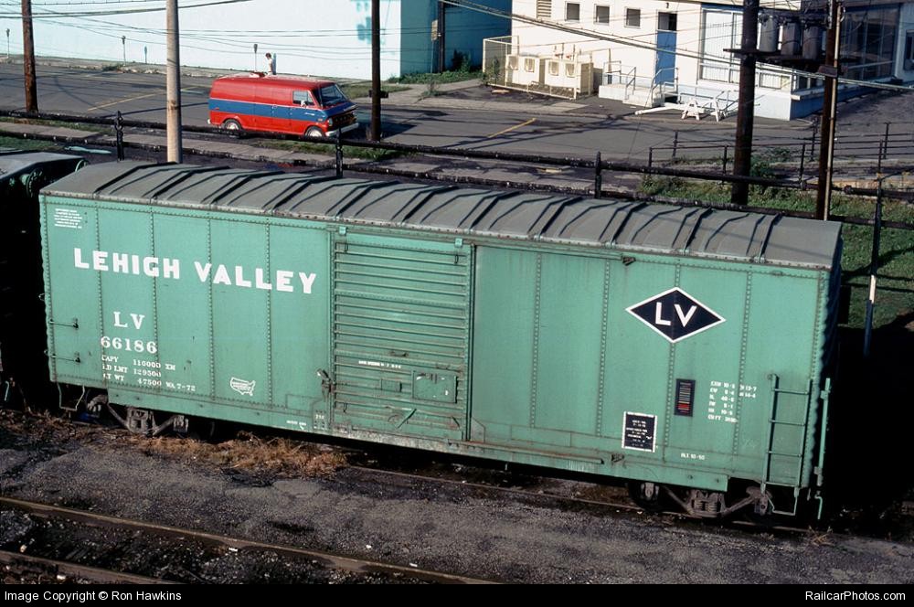 These 40'-6", 50-ton, box cars were built by Bethlehem Steel Corp. (Lot DF-147) in 7-10/1950. They featured 3890 ft3 capacity. Many were sold to USRE, rebuilt and leased back to the LV in 1969 & 1972 as above.