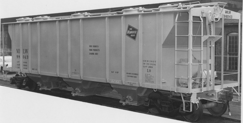 These 70 ton, 3-bay covered hopper cars were built by PS (lot 8332C) in 3/1957 as PS-2's. They featured 2893 ft3 capacity.